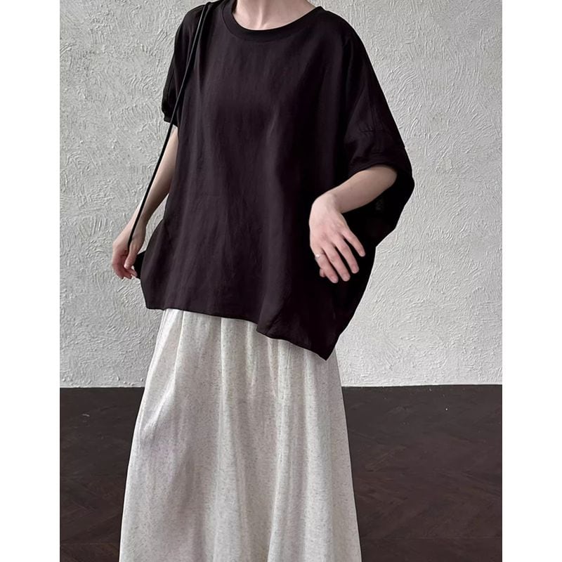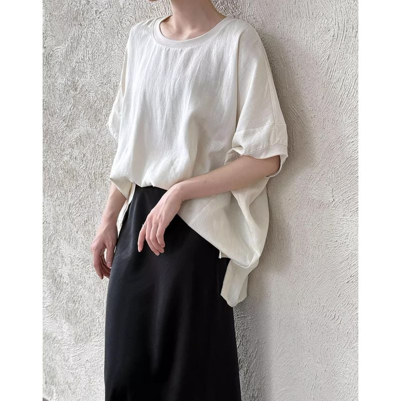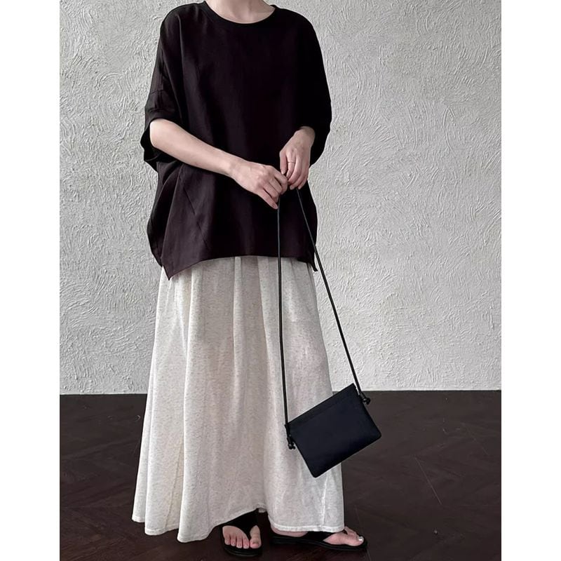 体型を気にせずリラックスして着られるシルエットながら、上品な雰囲気も兼ね備えています。