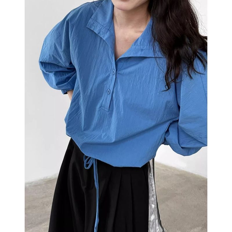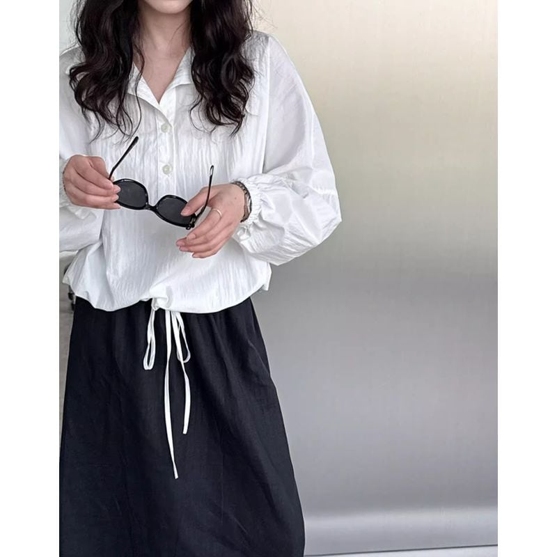 裾ドローストリングハーフボタンシャツ 202159