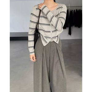 上品なVネックラインが顔周りをすっきりと見せ、カジュアルにもきれいめにも着回し可能。