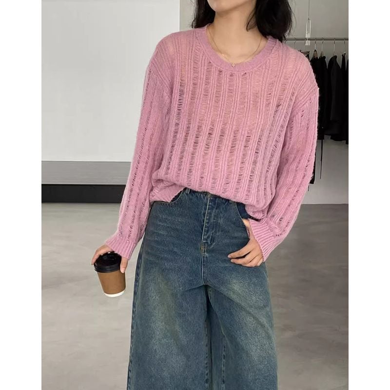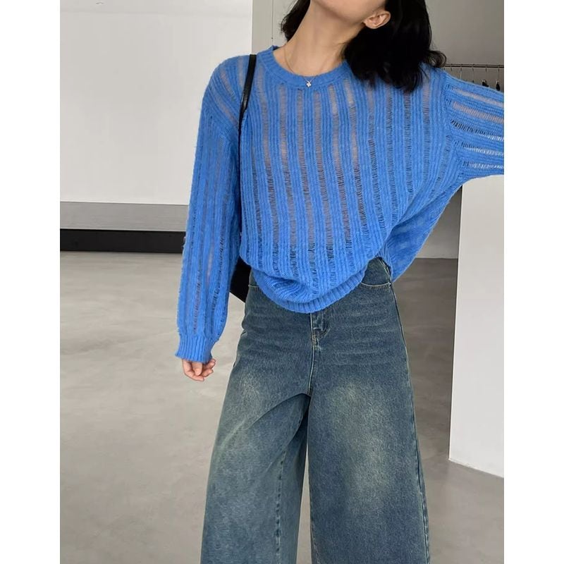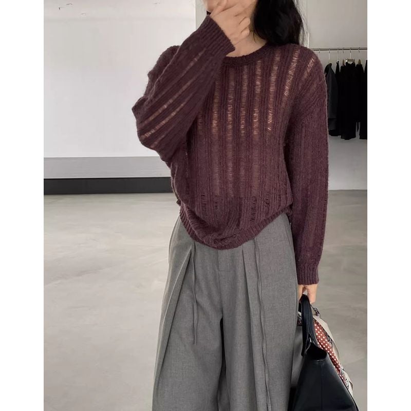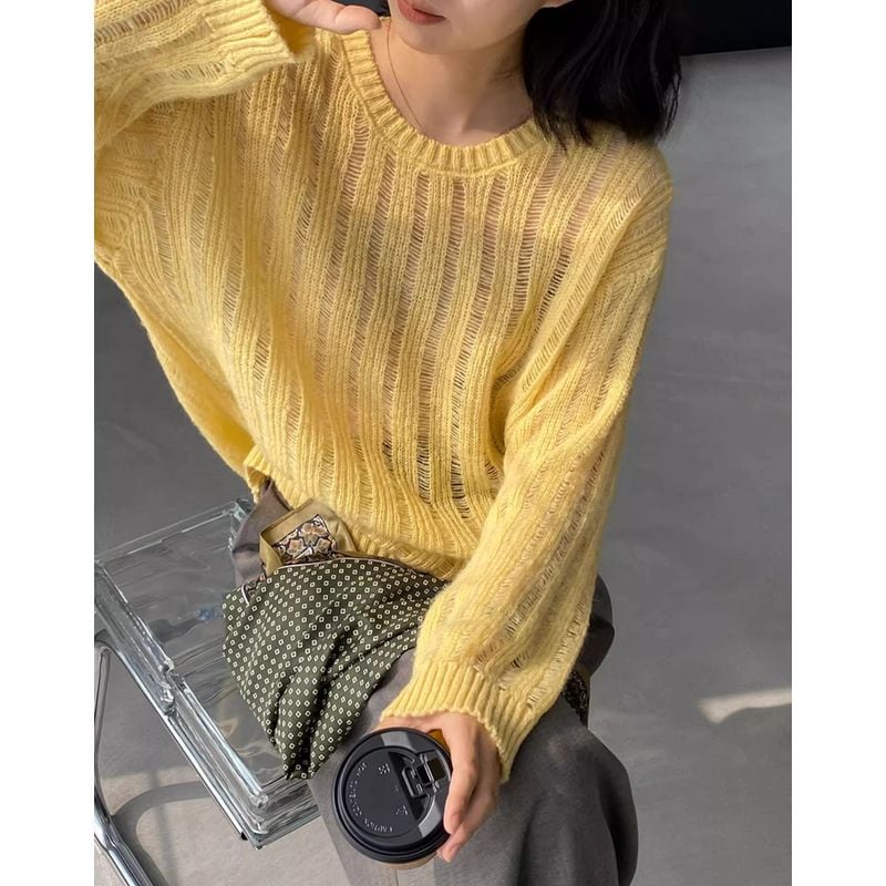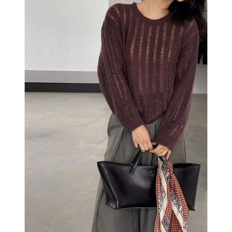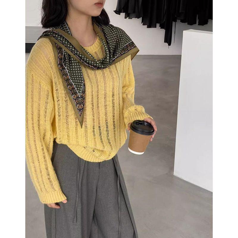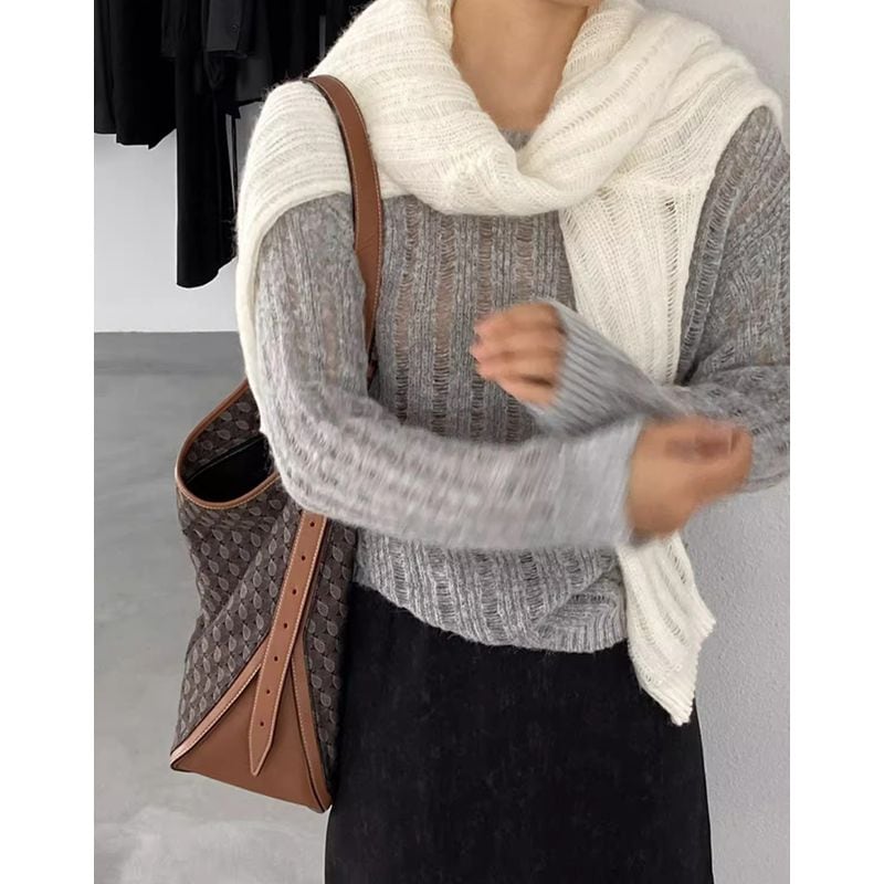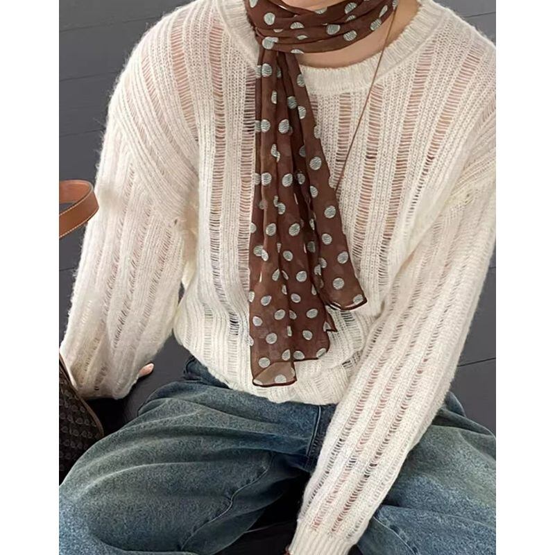 透かし編みのデザインが、さりげない抜け感を演出します。