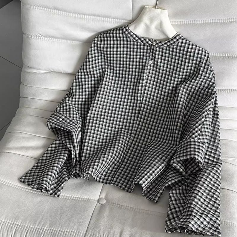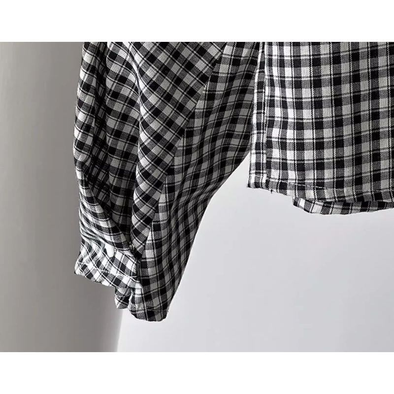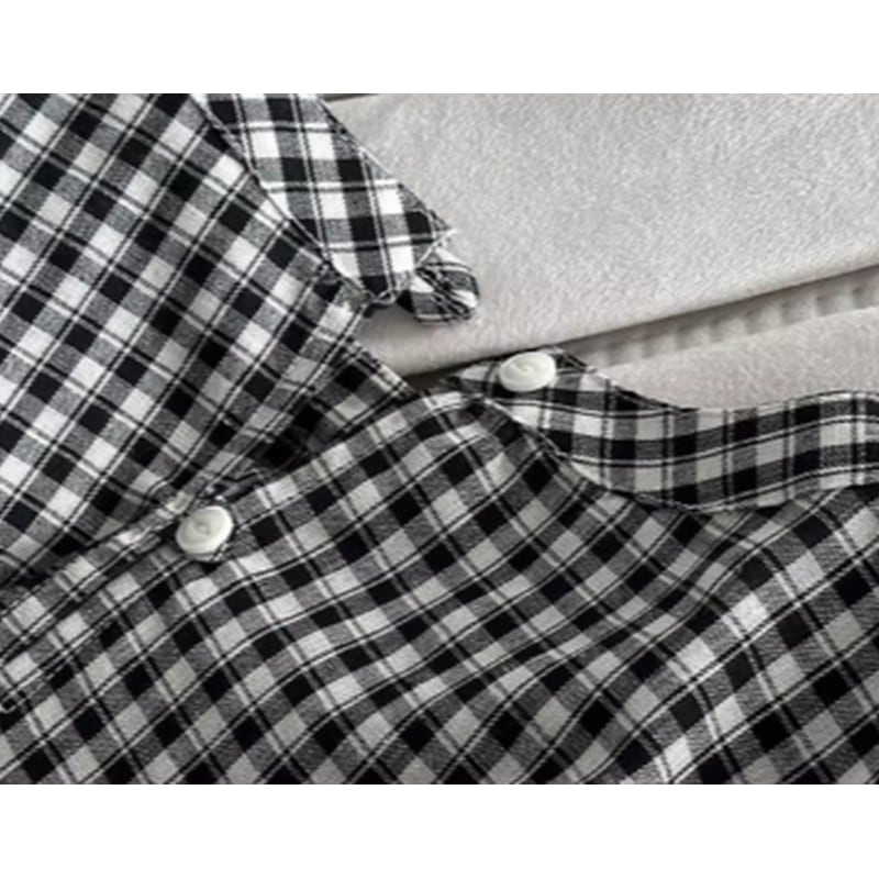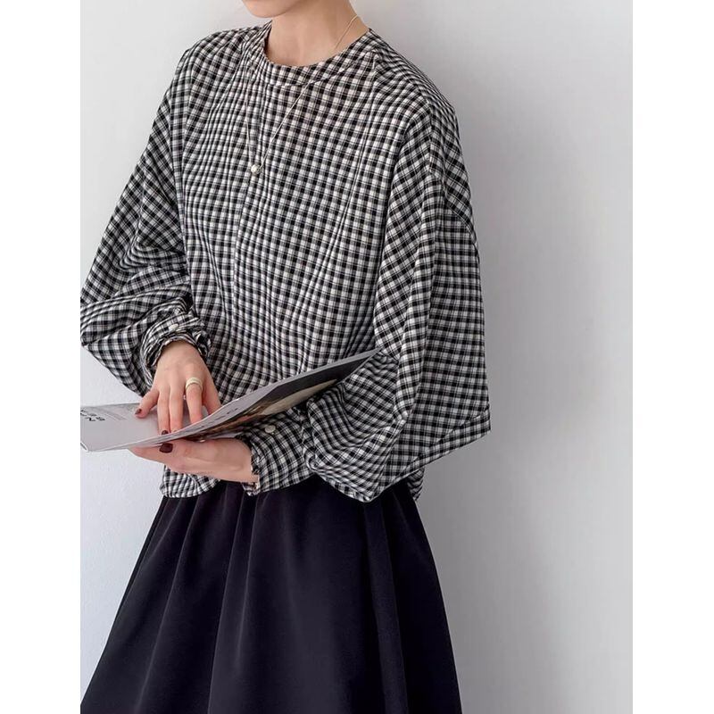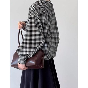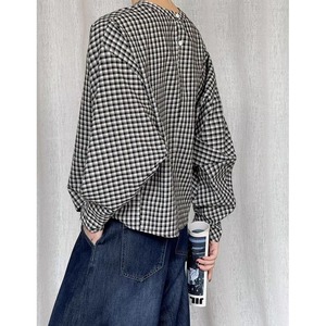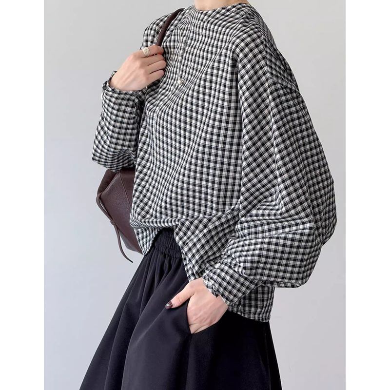 バックボタンボリュームスリーブチェックブラウス 202182