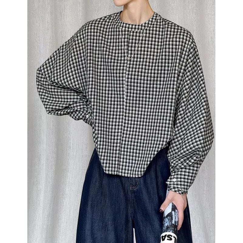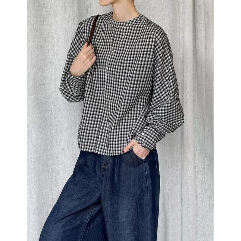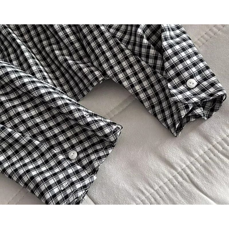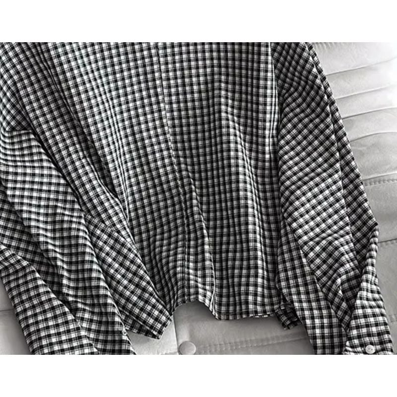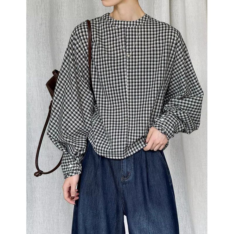 バックボタンボリュームスリーブチェックブラウス 202182