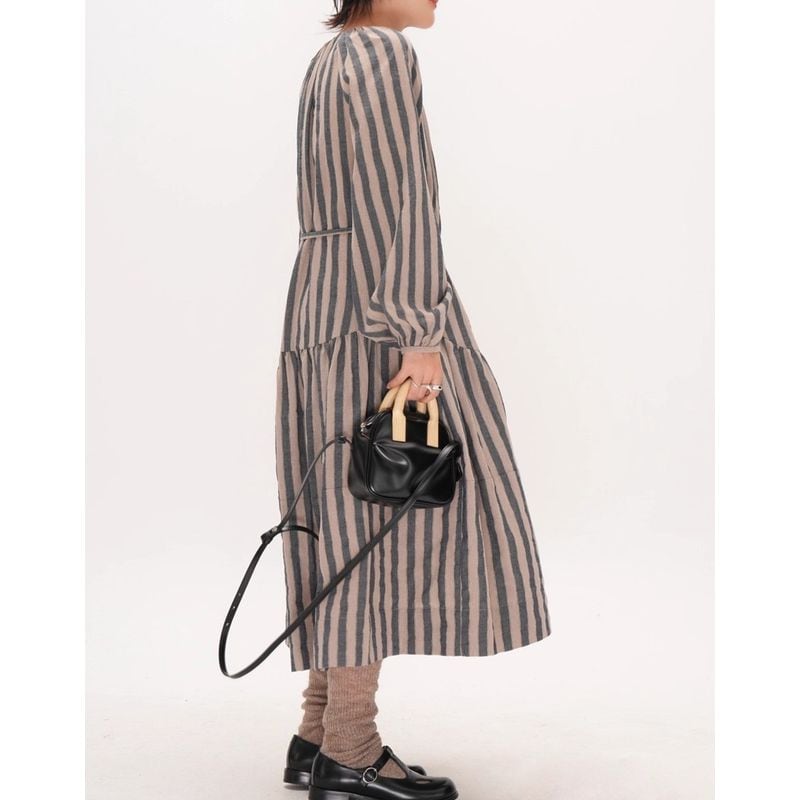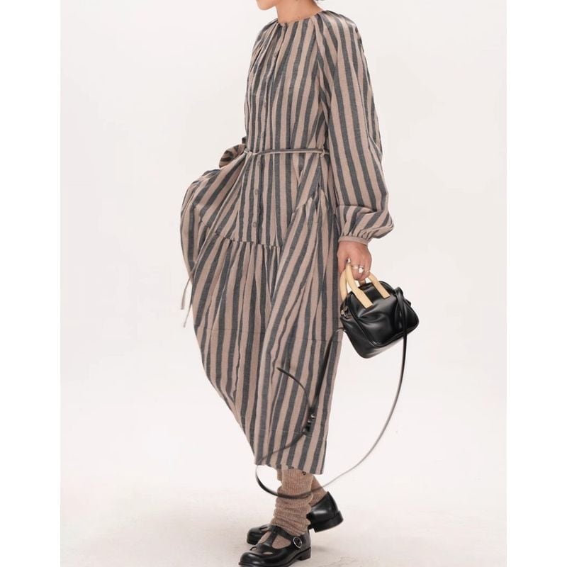 カジュアルながらも上品なストライプ柄が魅力のワンピース。