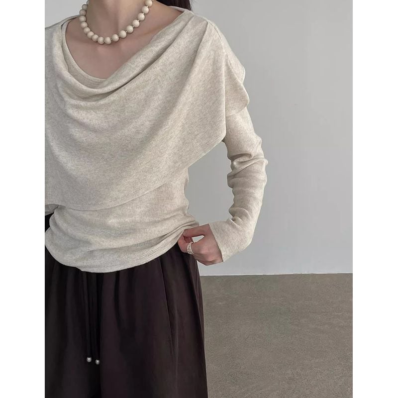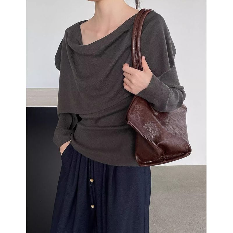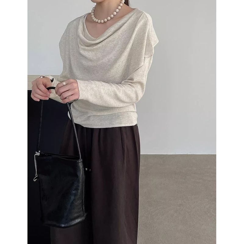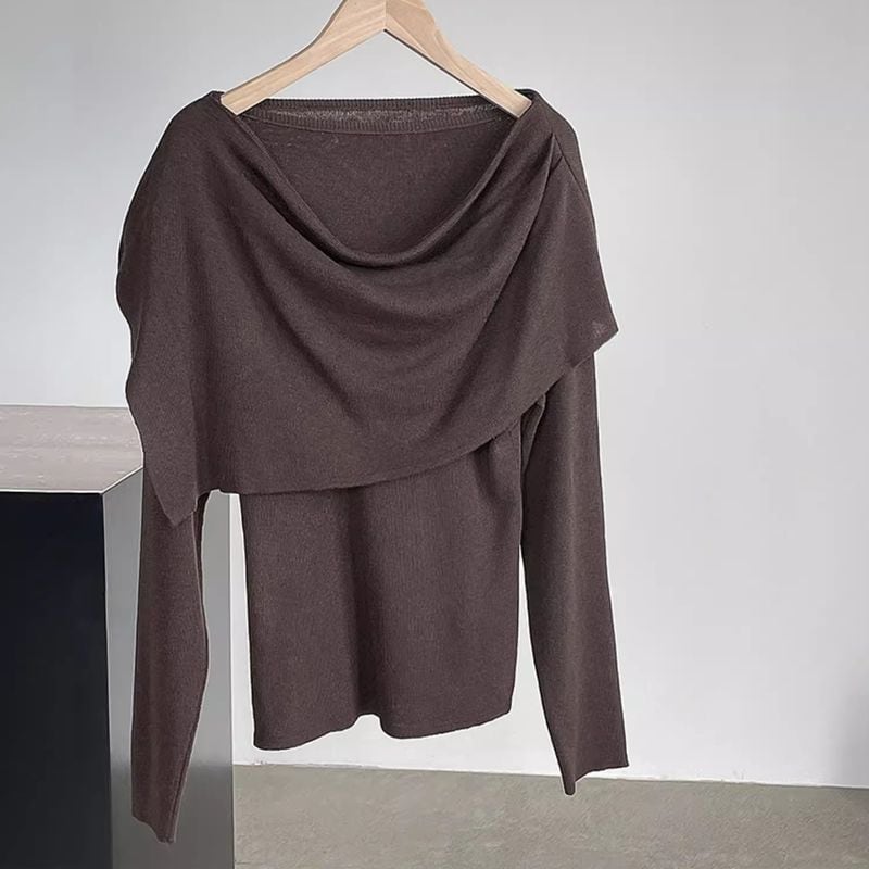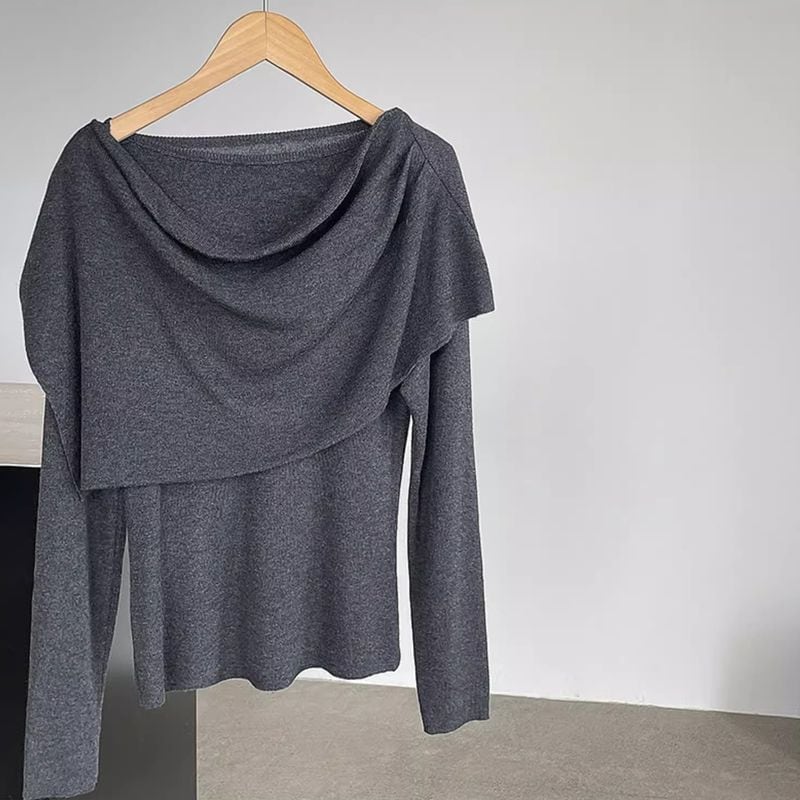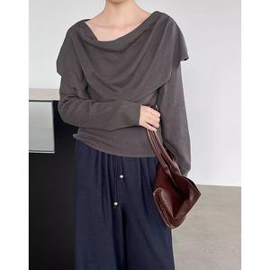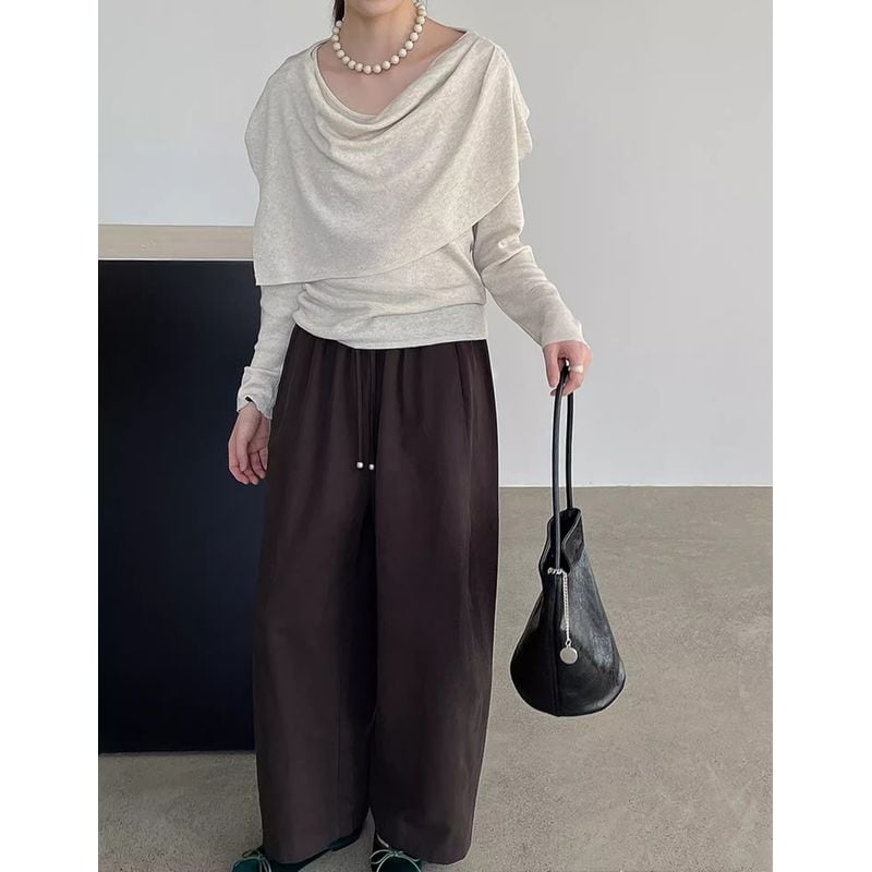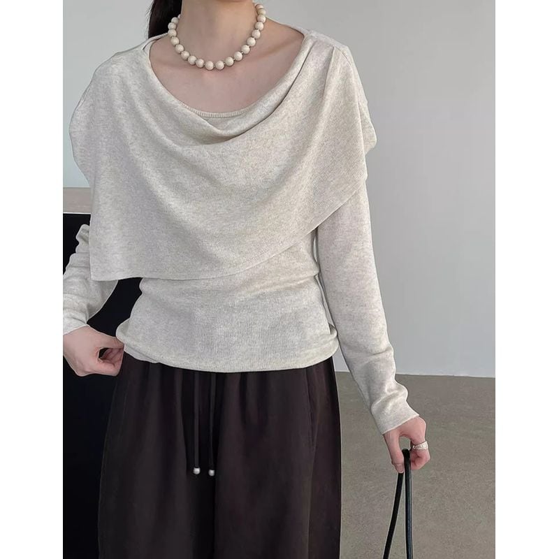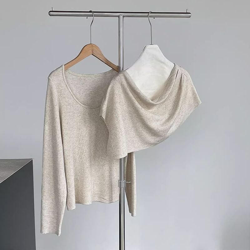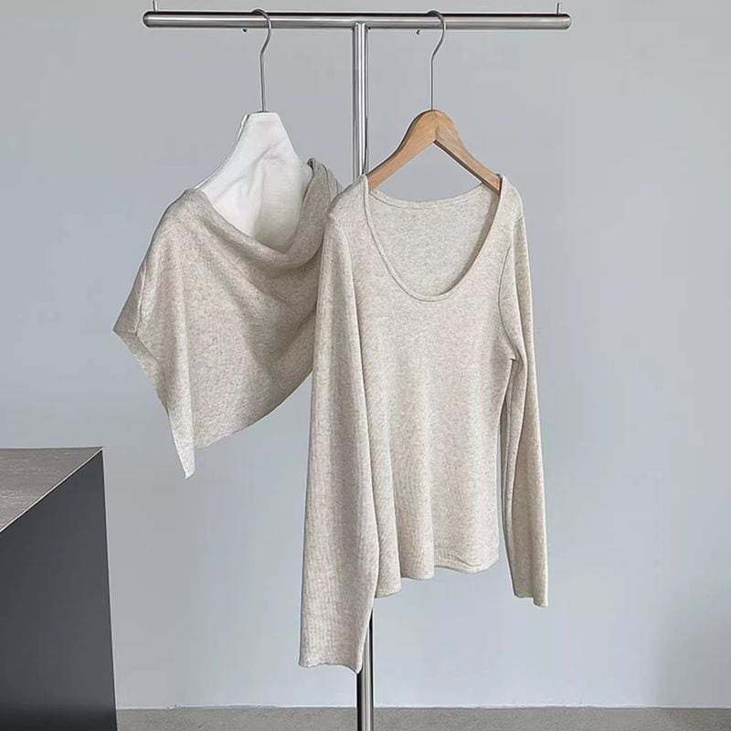 シンプルなリブニットと、ドレープの美しいショールの2点セット。