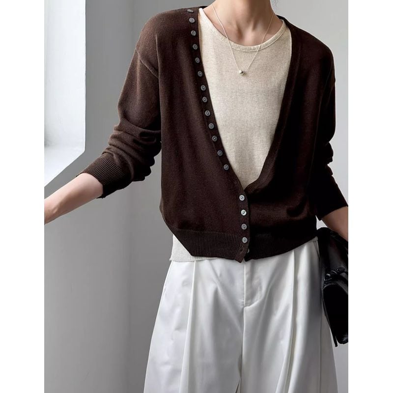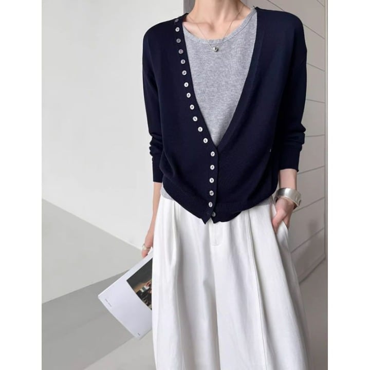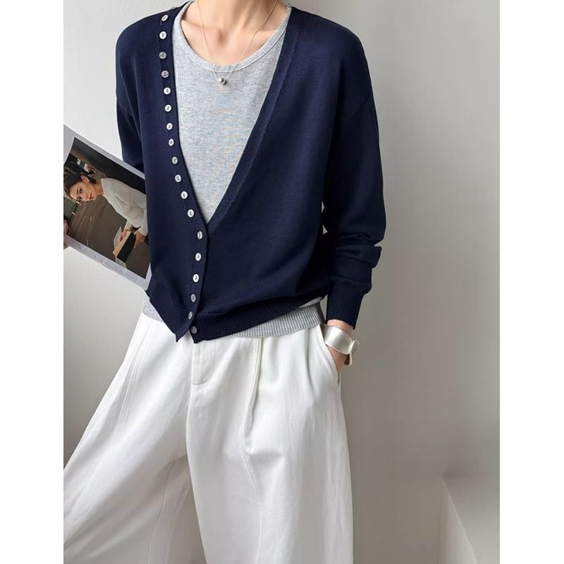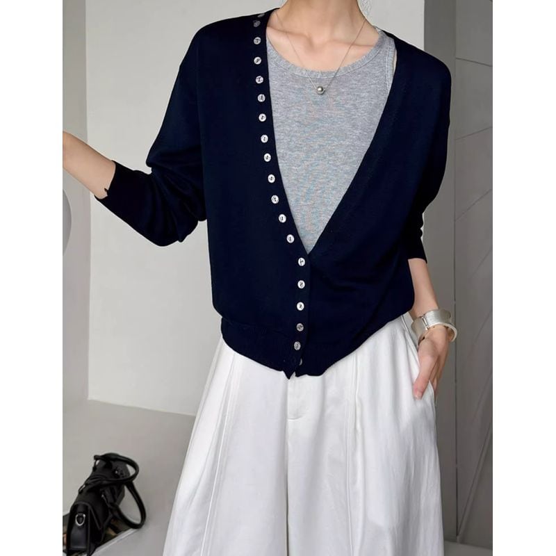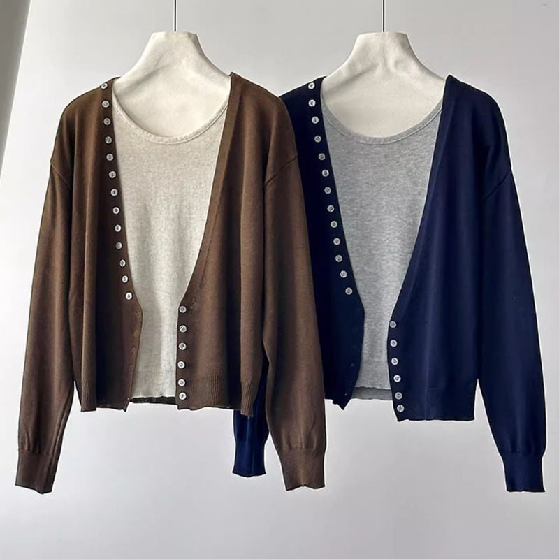 深Vネックニットカーディガン+ノースリーブセット 202195