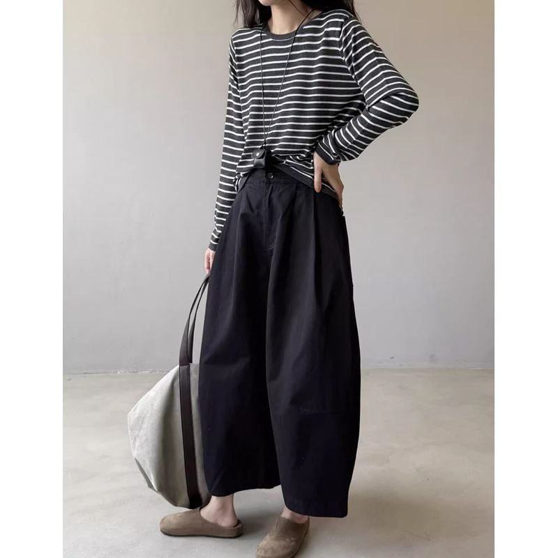 ゆったりとしたシルエットが魅力のクロップドワイドパンツ。