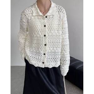 透かし編みポロカラーニットカーディガン 202209