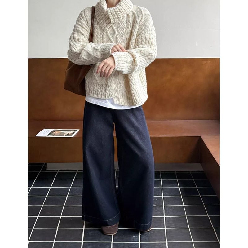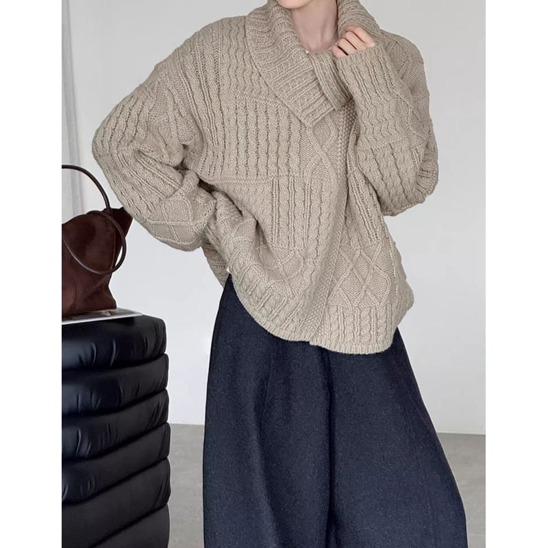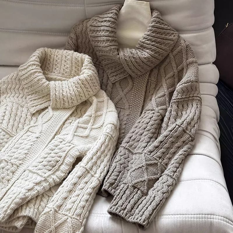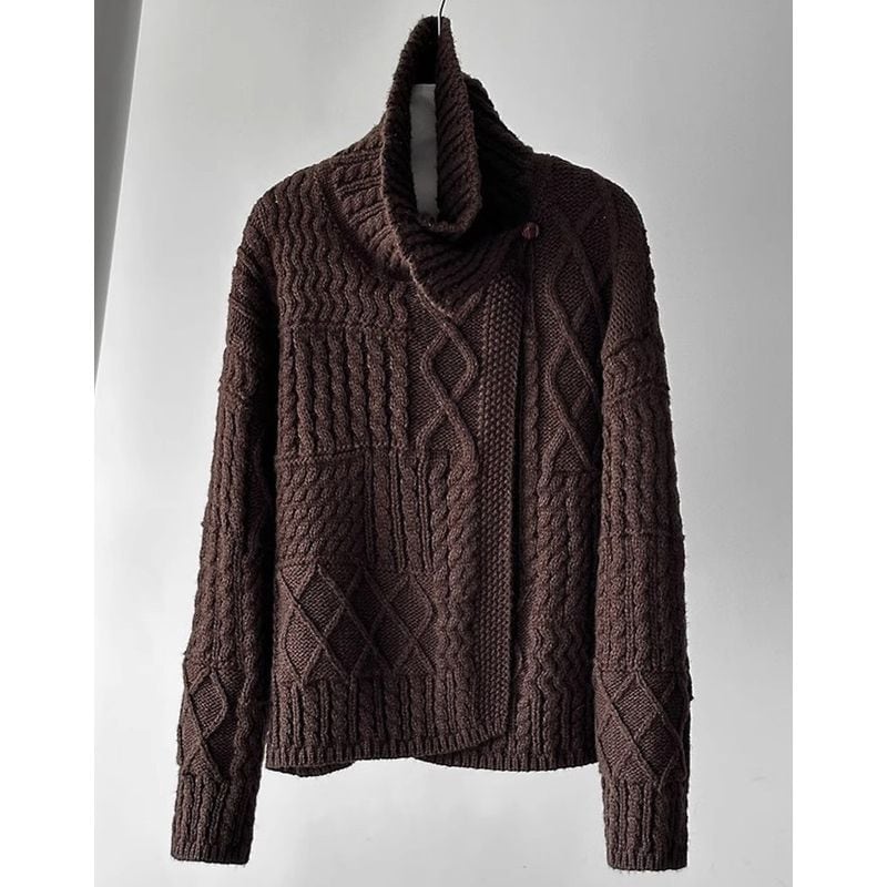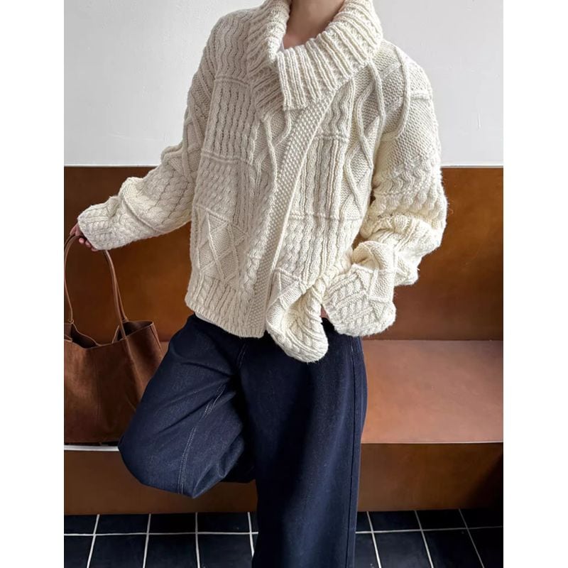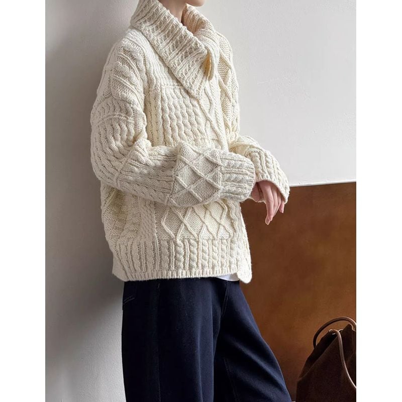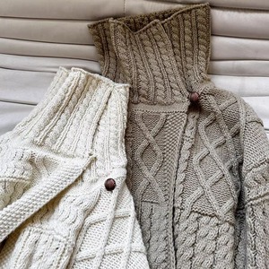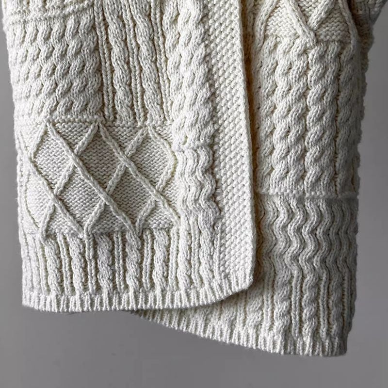 様々な編み柄を組み合わせたデザインで、シンプルながらも表情豊かな印象を与えます。