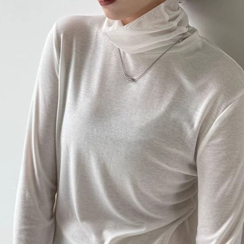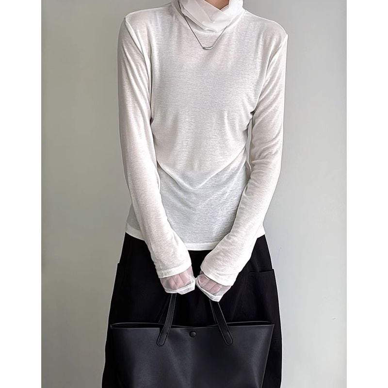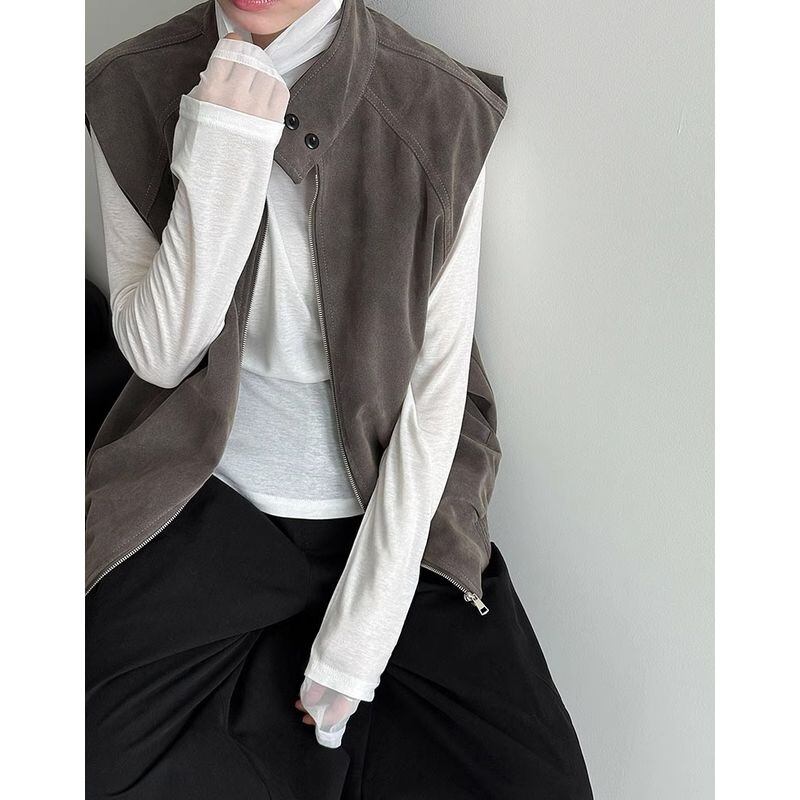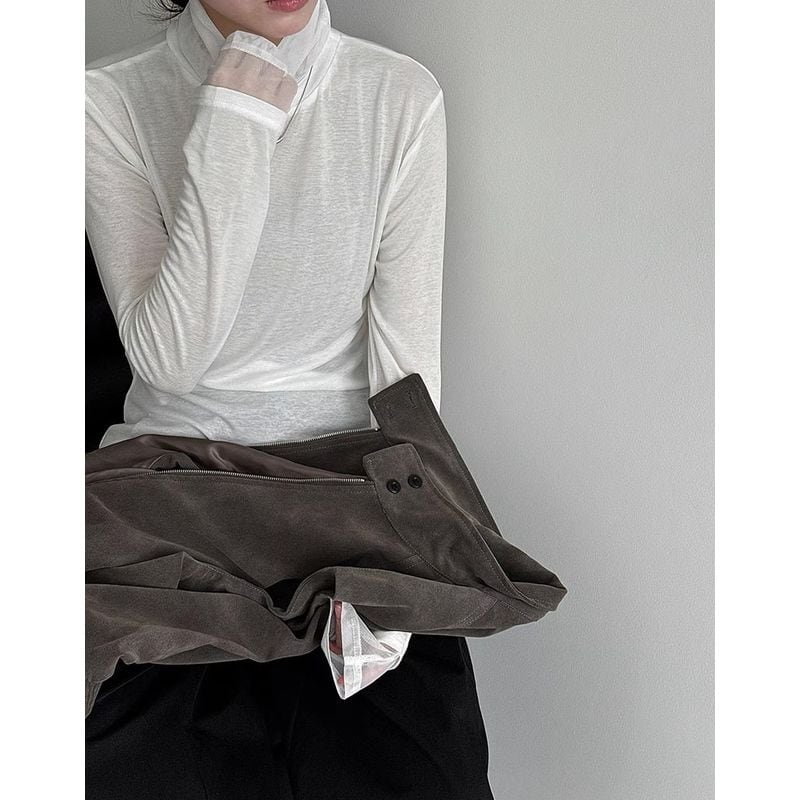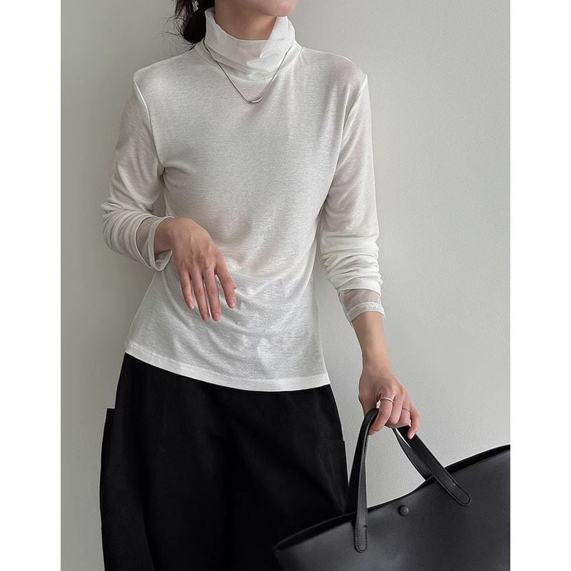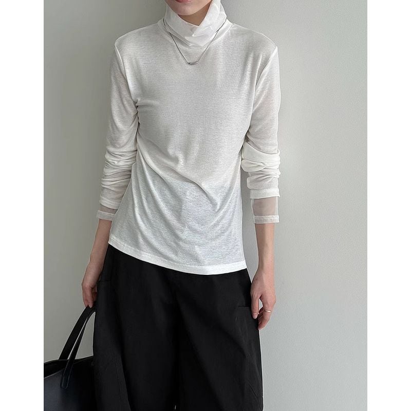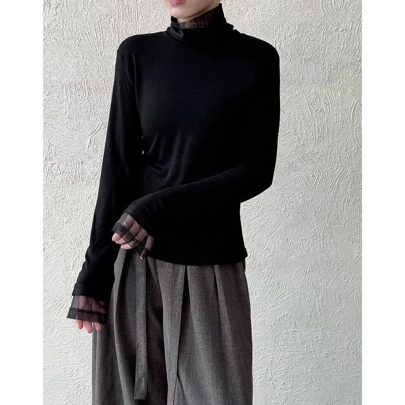 ジャケットやカーディガンのインナーとしても活躍し、オフィススタイルにもおすすめです。