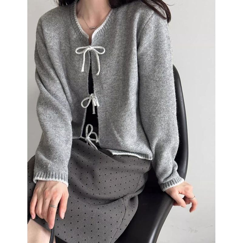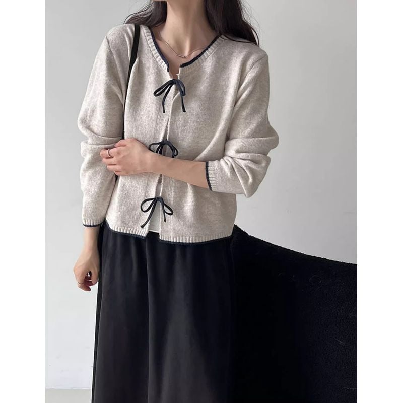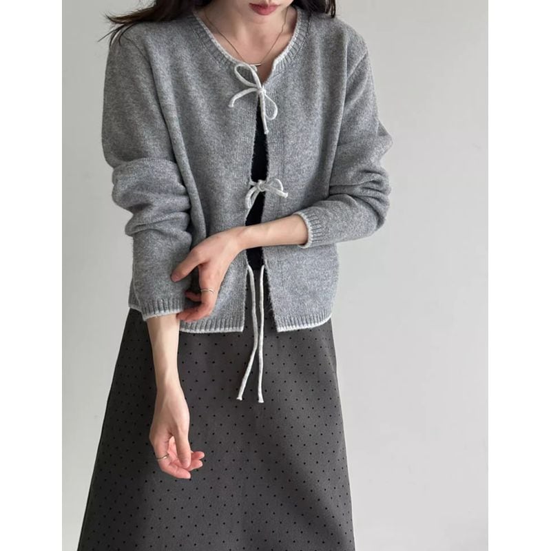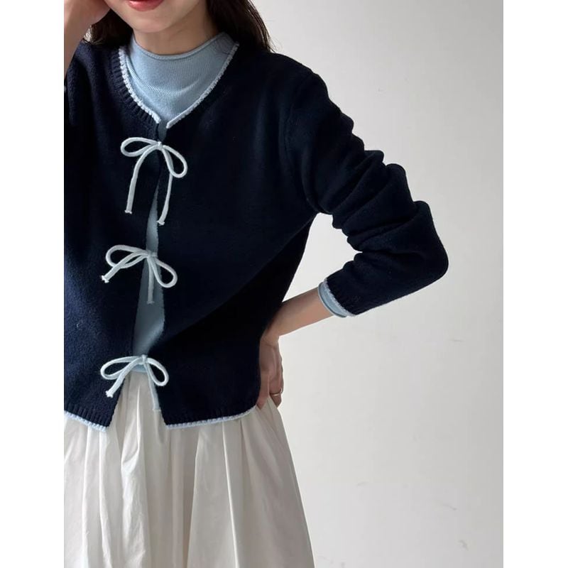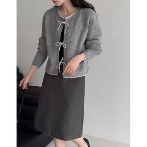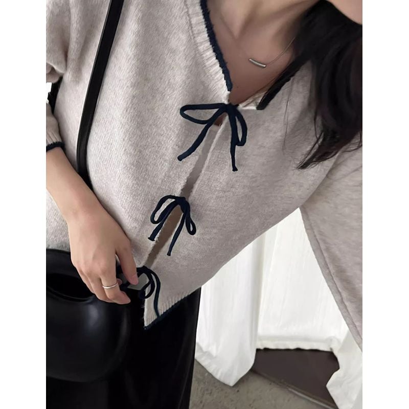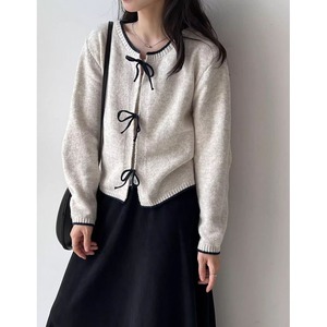 リボン付きバイカラーニットカーディガン 202227