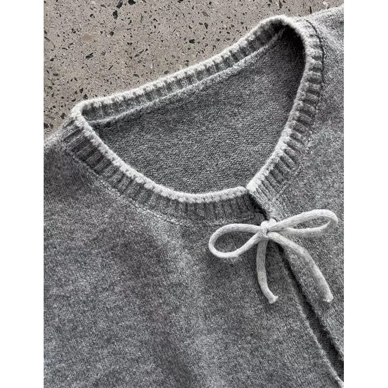 リボン使いが可愛らしいショートニットカーディガン。