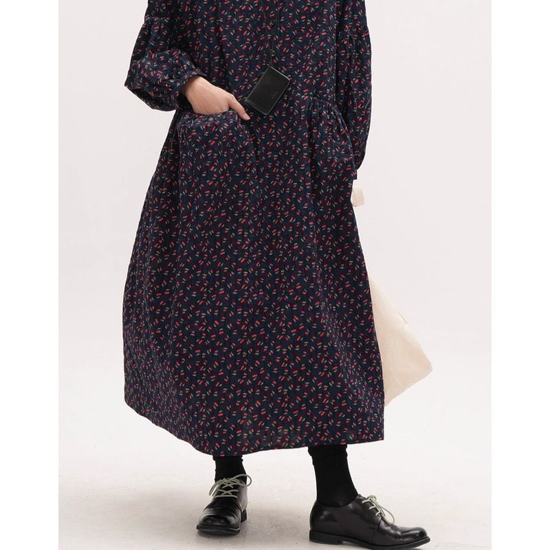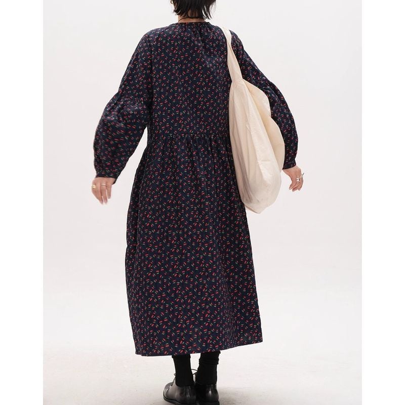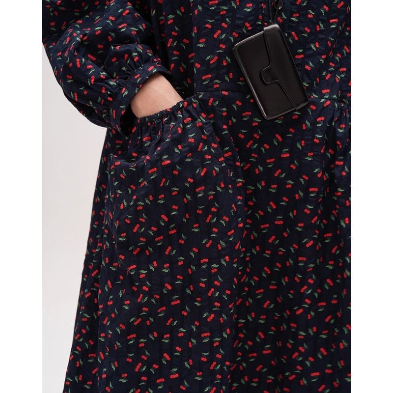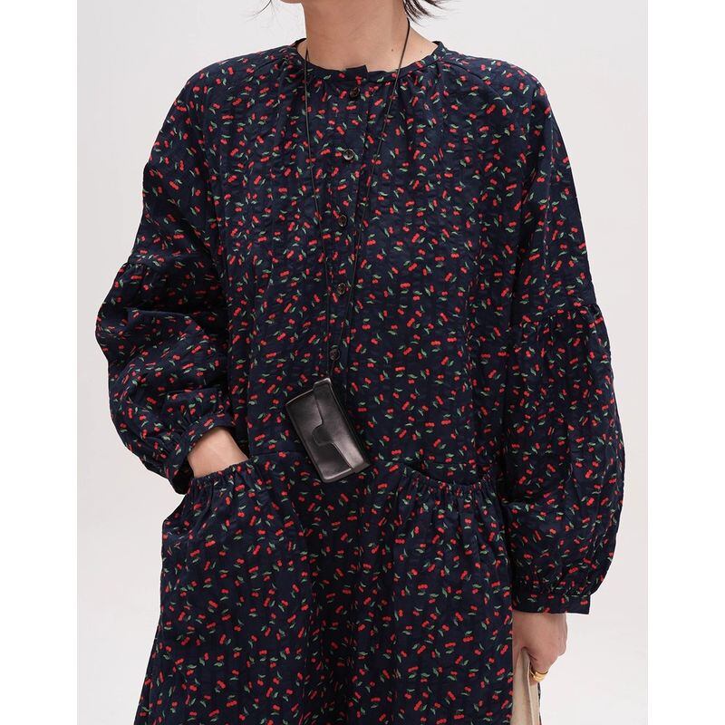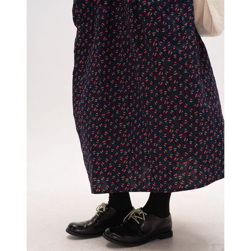 落ち着いた色味とさりげないさくらんぼ柄が大人女性にぴったりなワンピース。