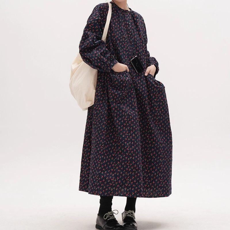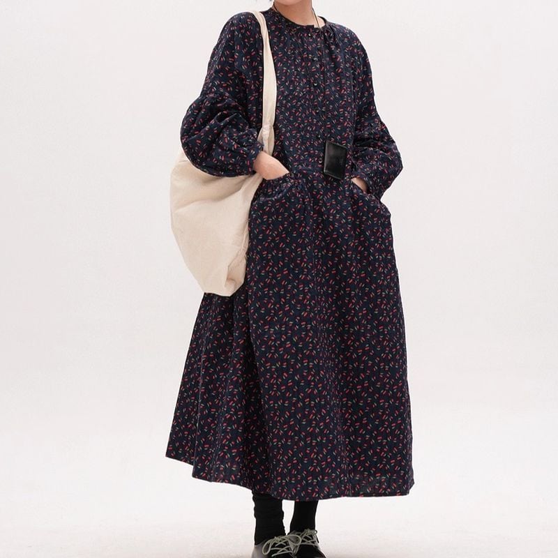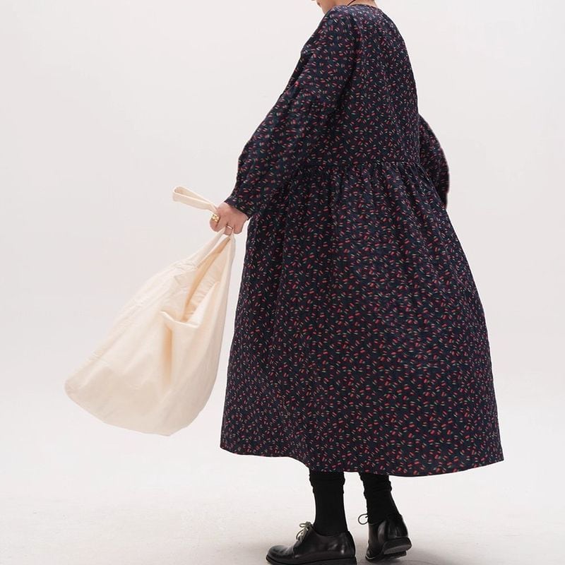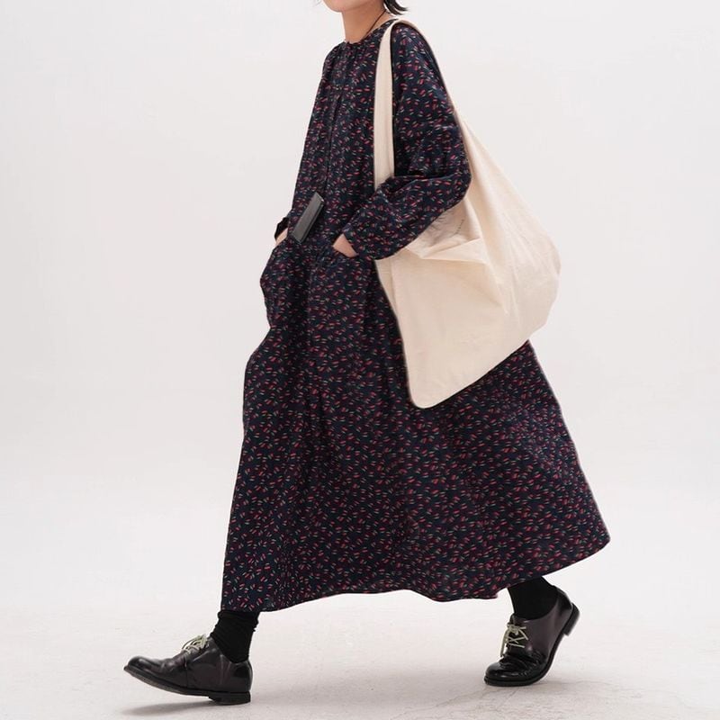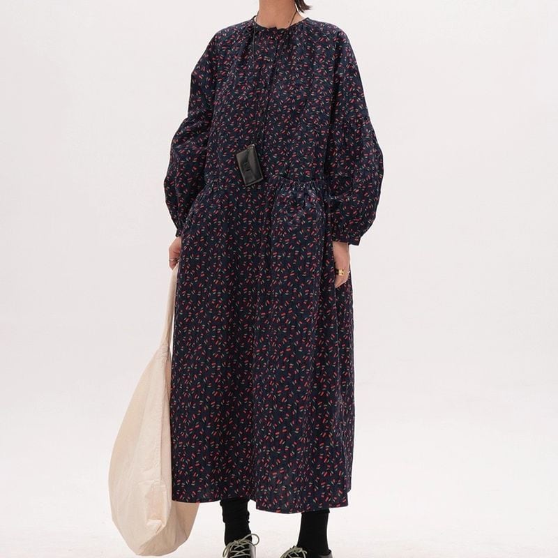落ち着いた色味とさりげないさくらんぼ柄が大人女性にぴったりなワンピース。