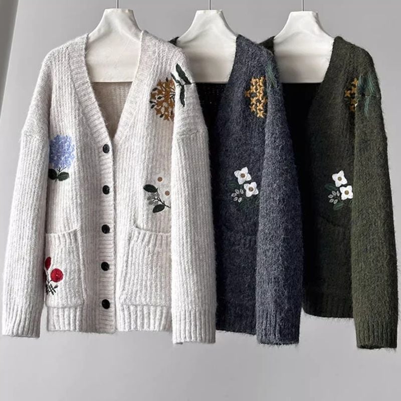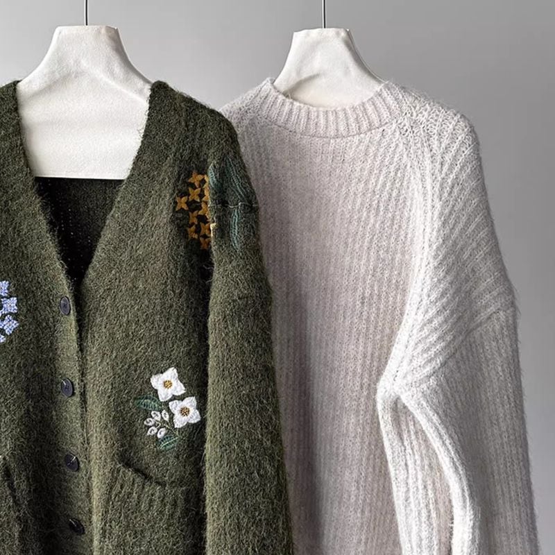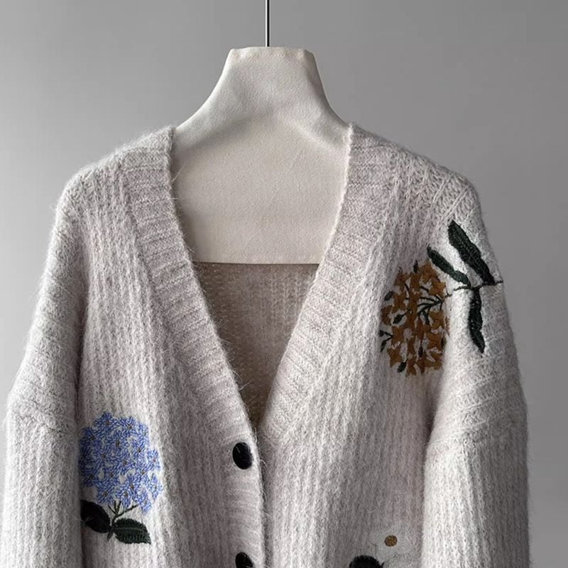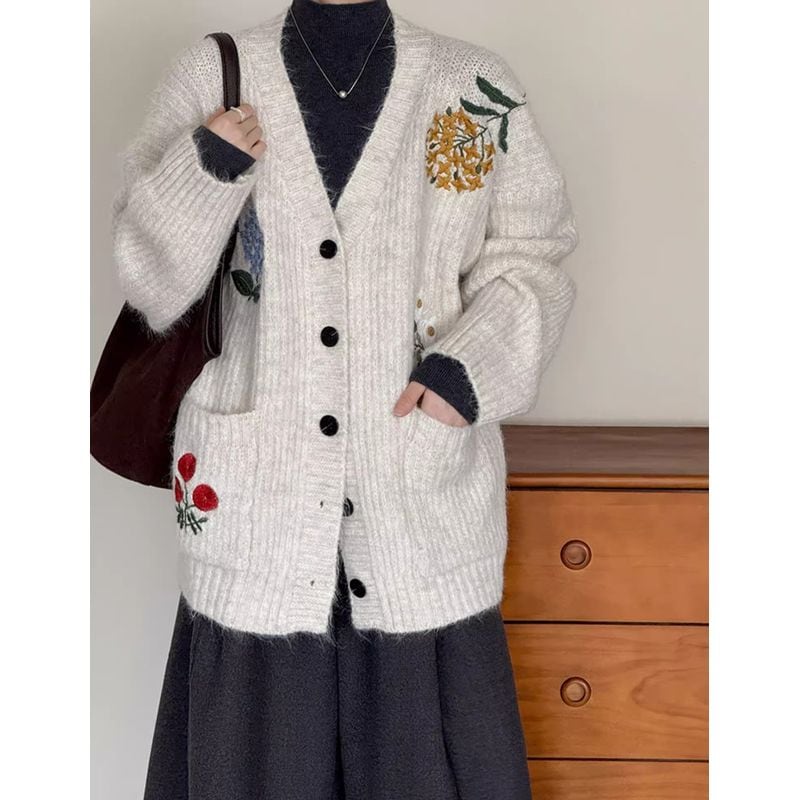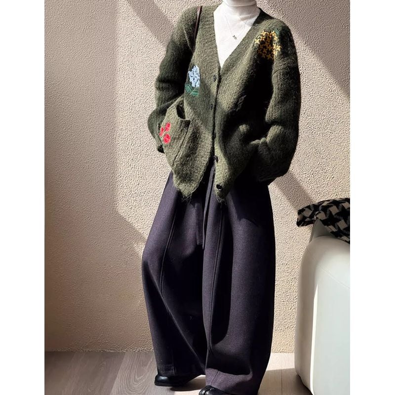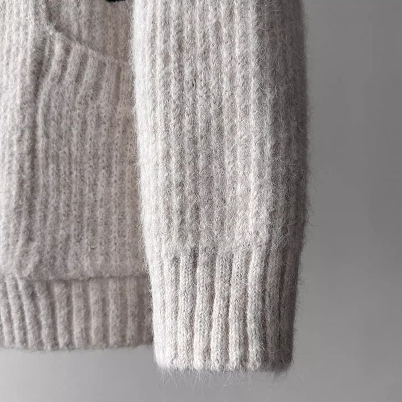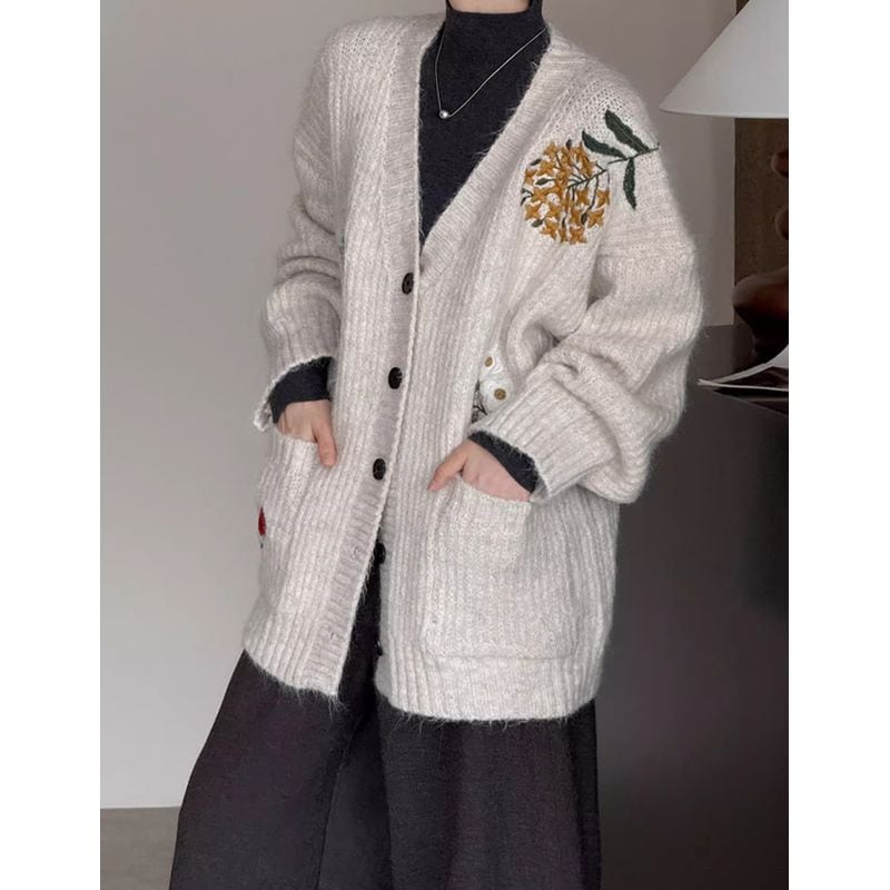 Vネックとオーバーサイズのシルエットが、抜け感を演出するカーディガン。