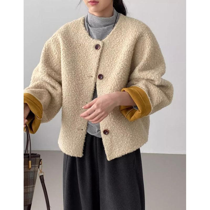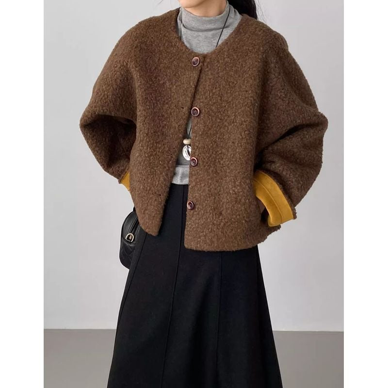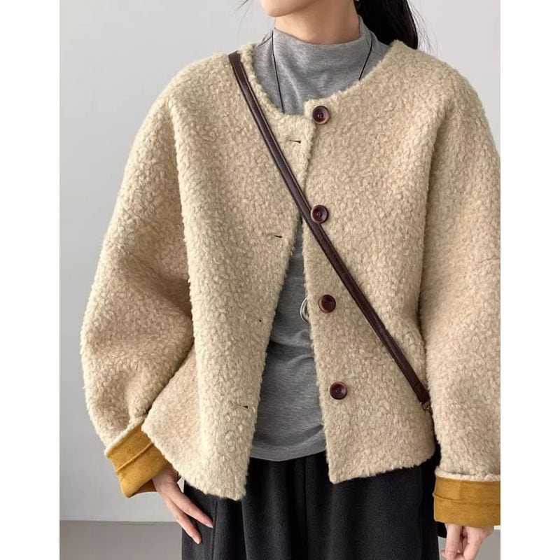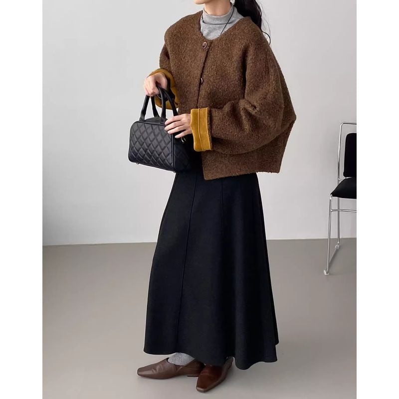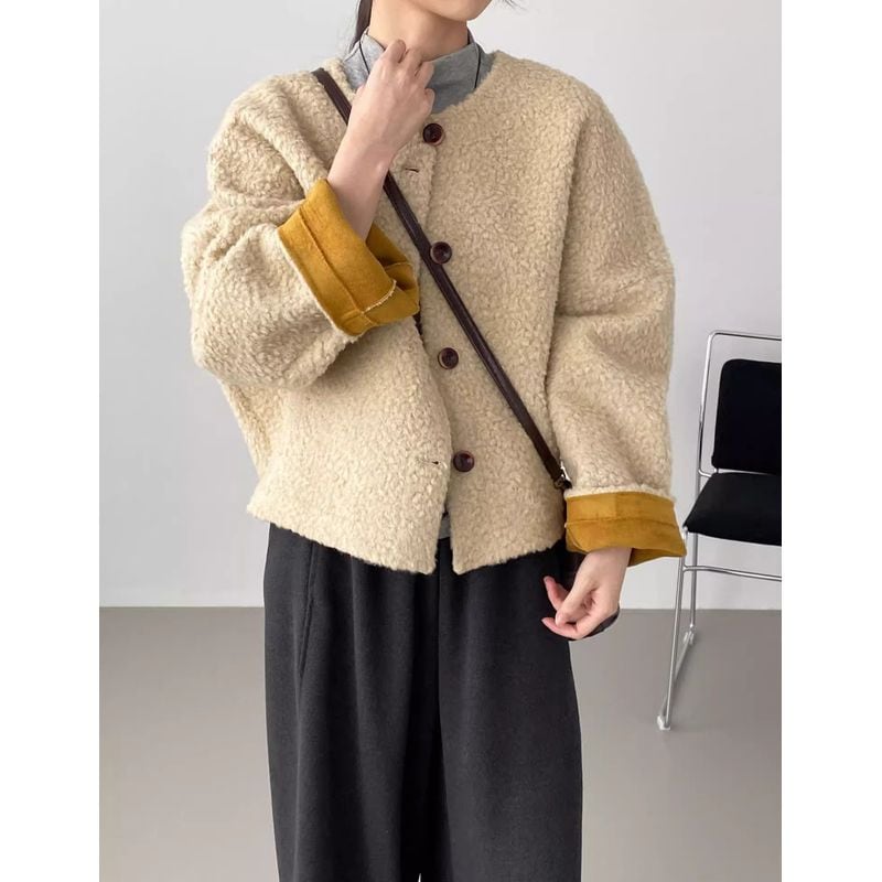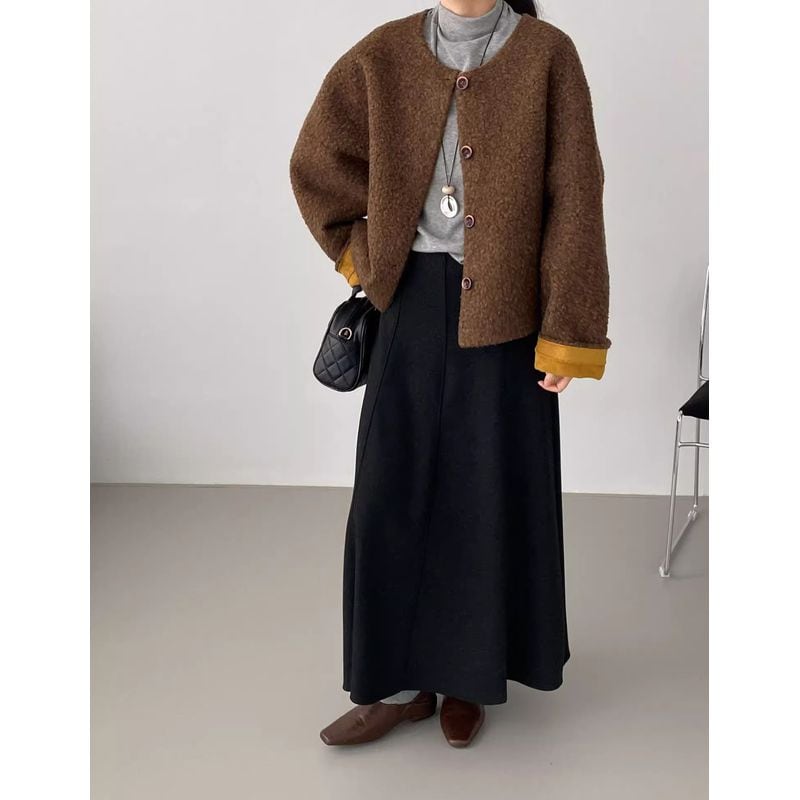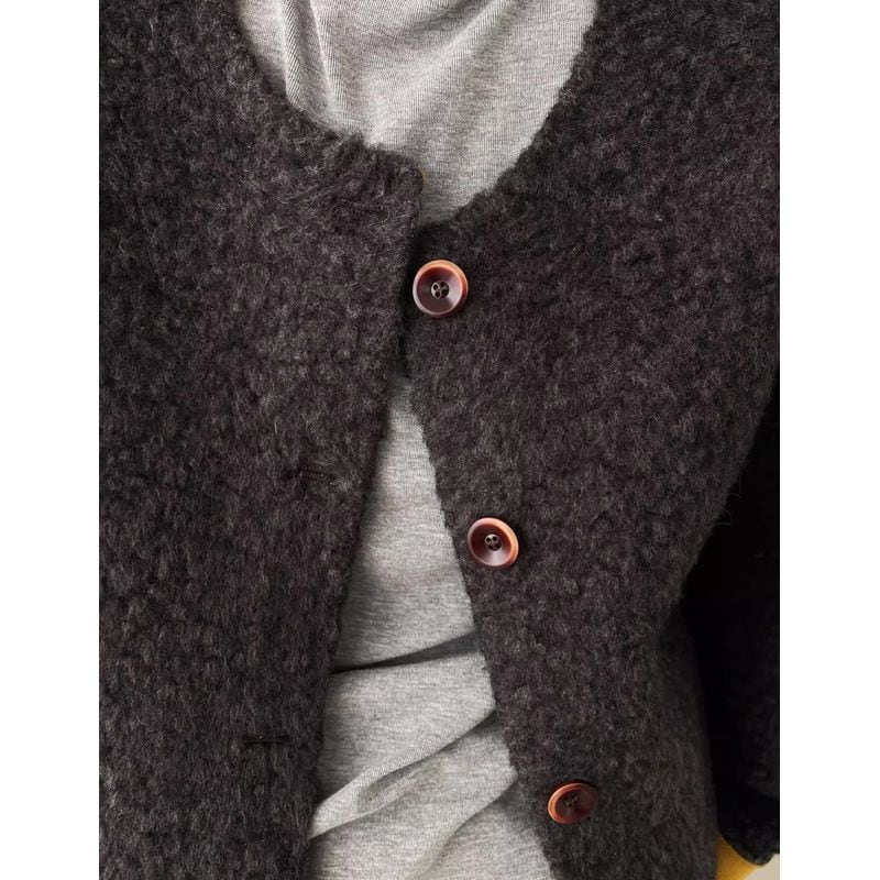 ノーカラーなので、タートルネックやマフラーとの相性も抜群です。