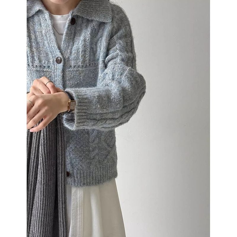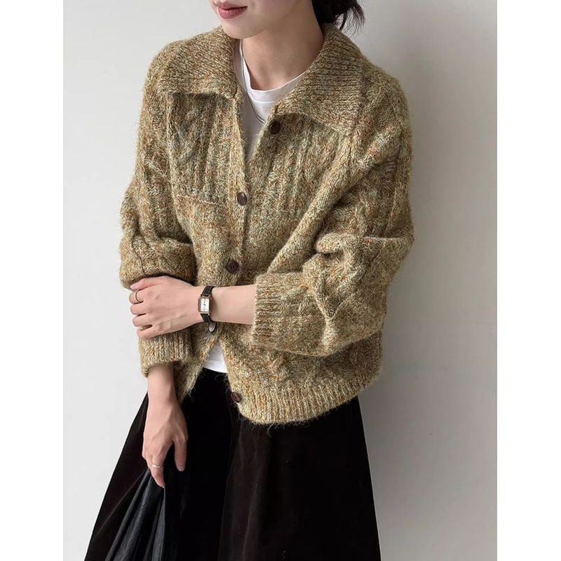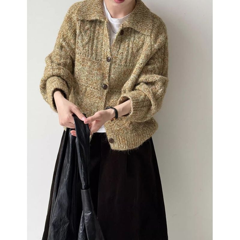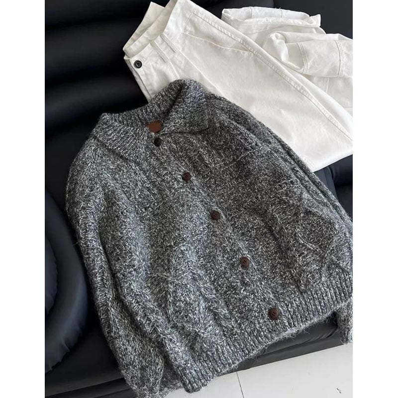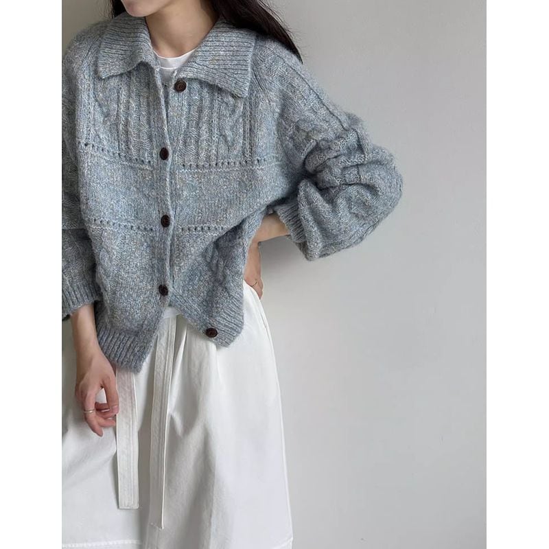 クラシカルなケーブル編みが魅力のニットカーディガン。