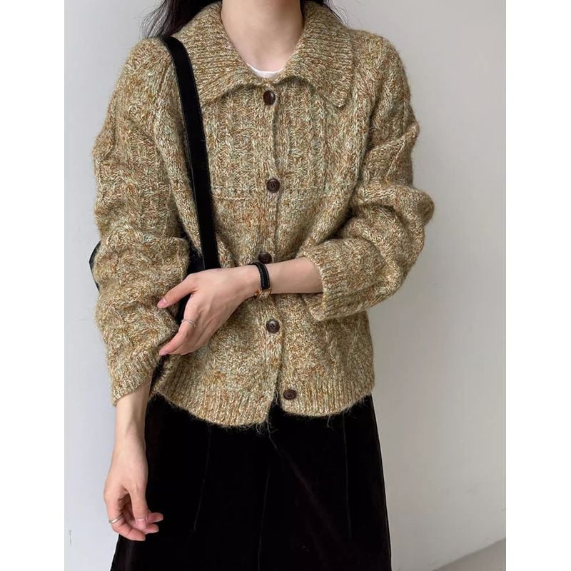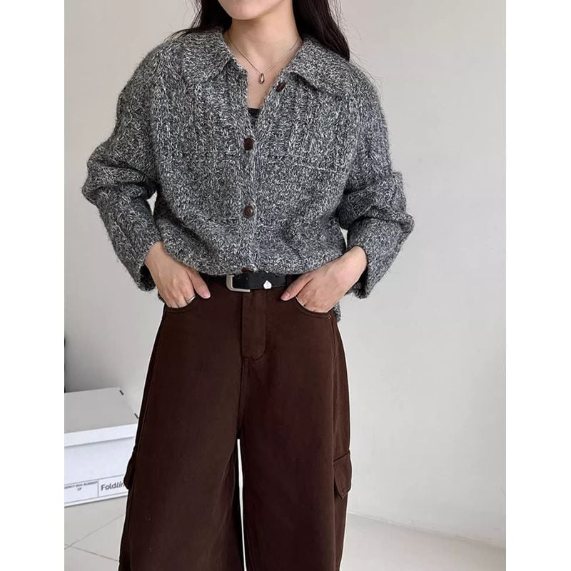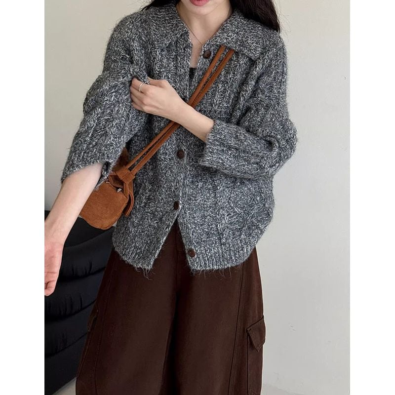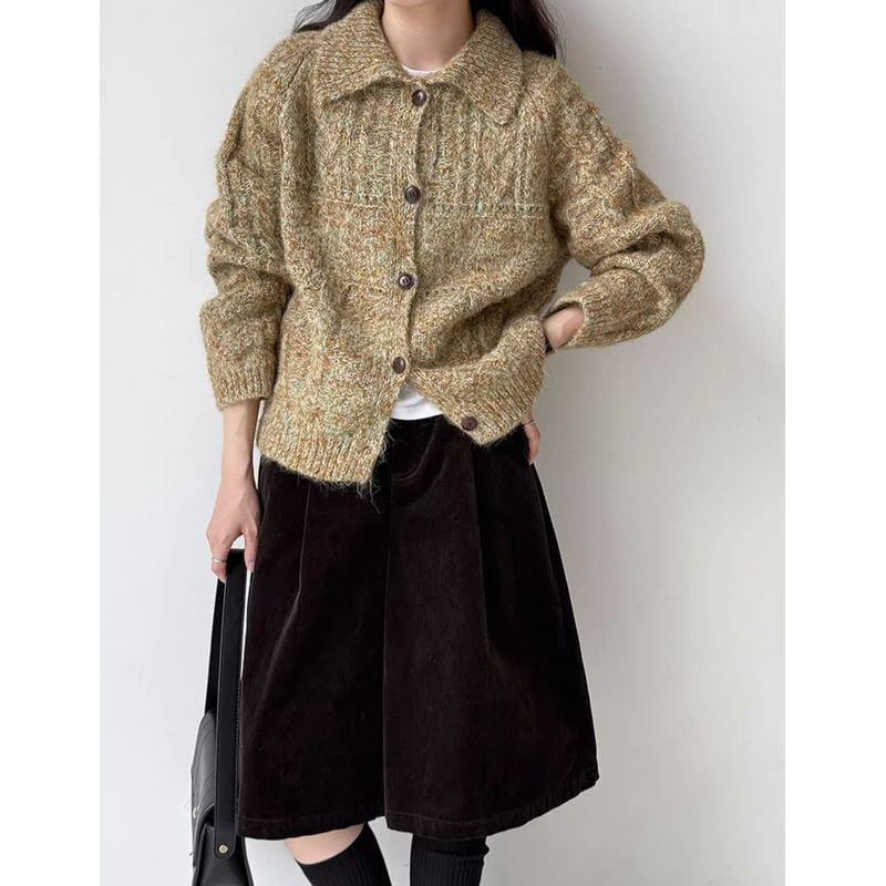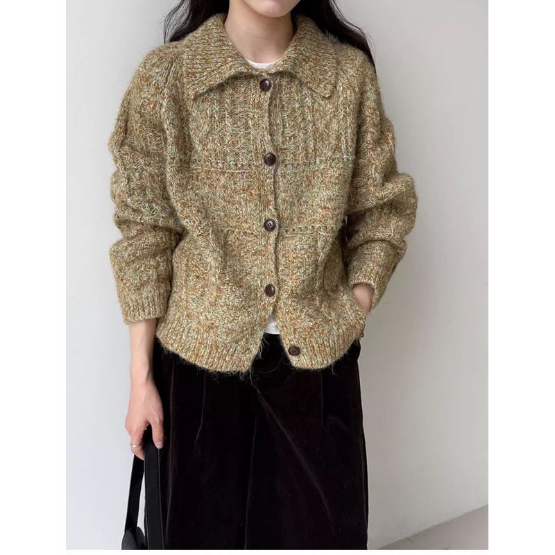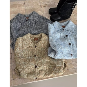 クラシカルなケーブル編みが魅力のニットカーディガン。