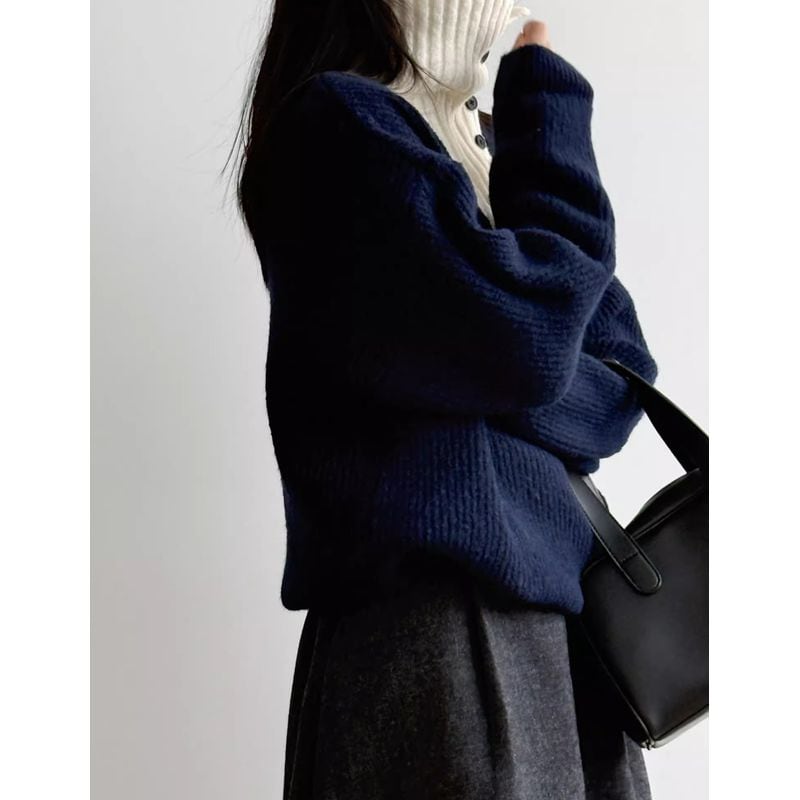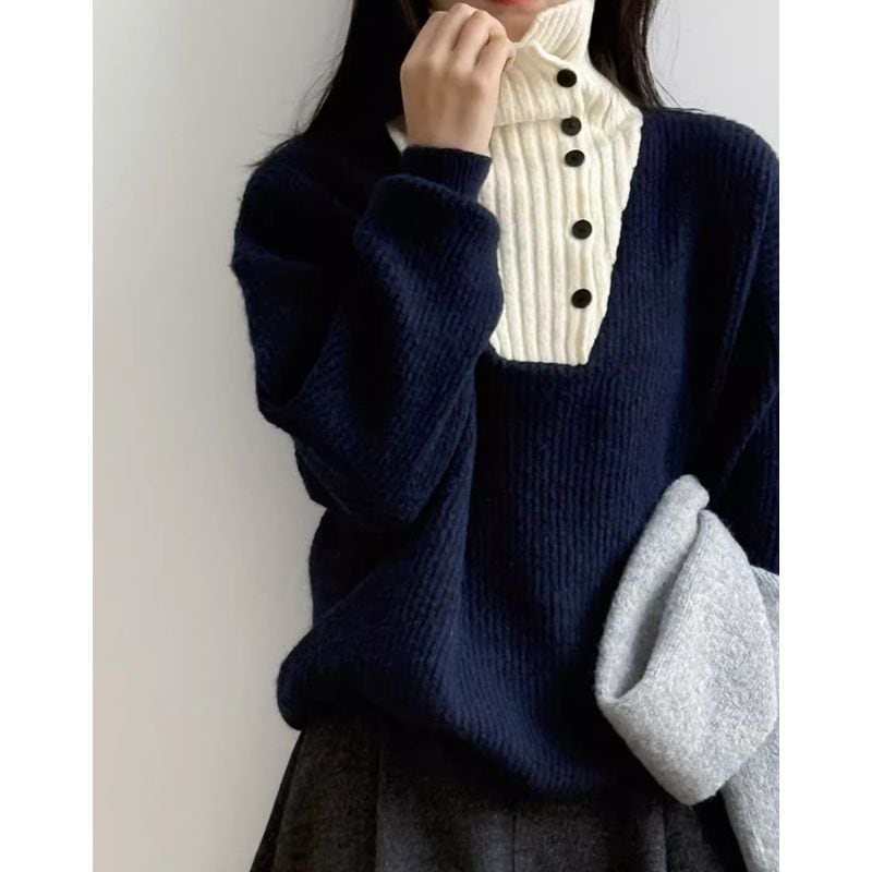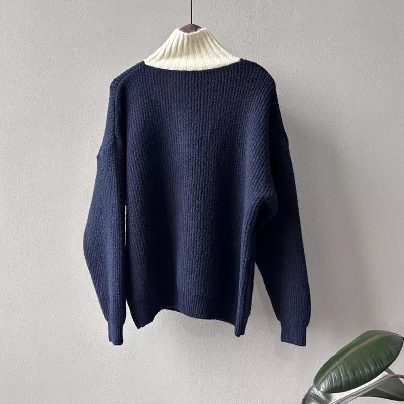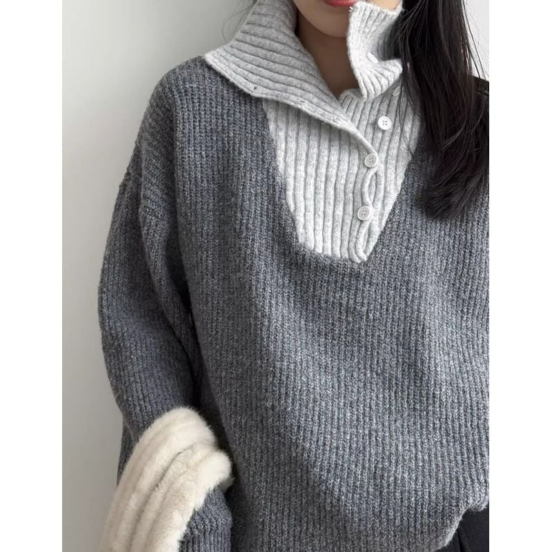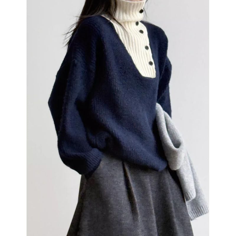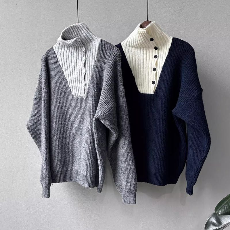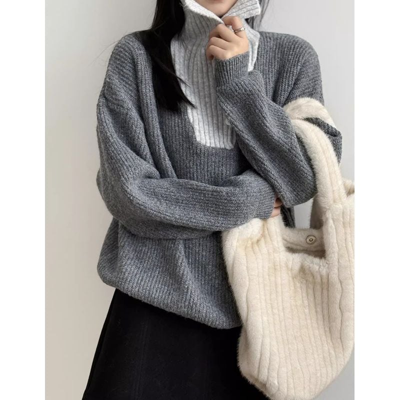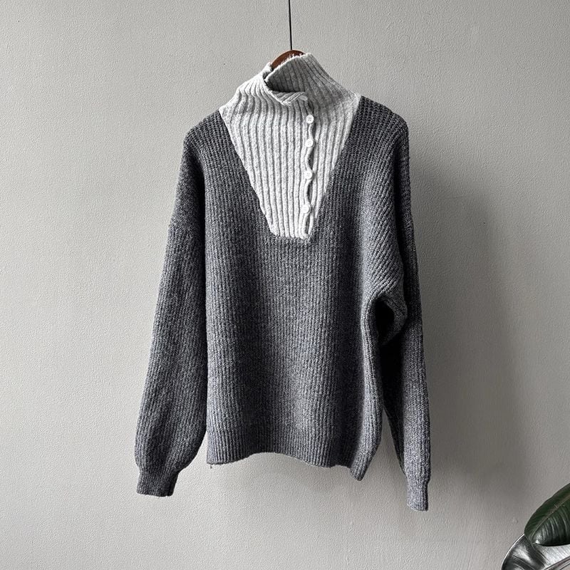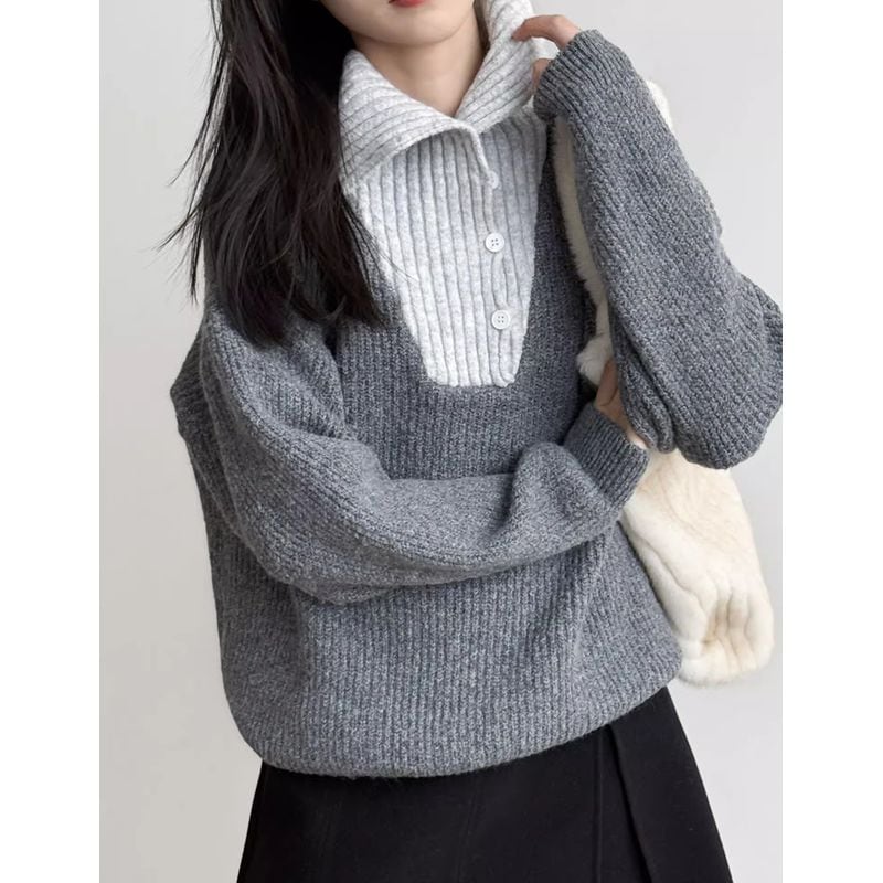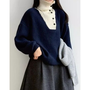 一枚でコーディネートが決まる、レイヤード風ニットプルオーバー。