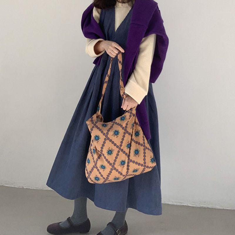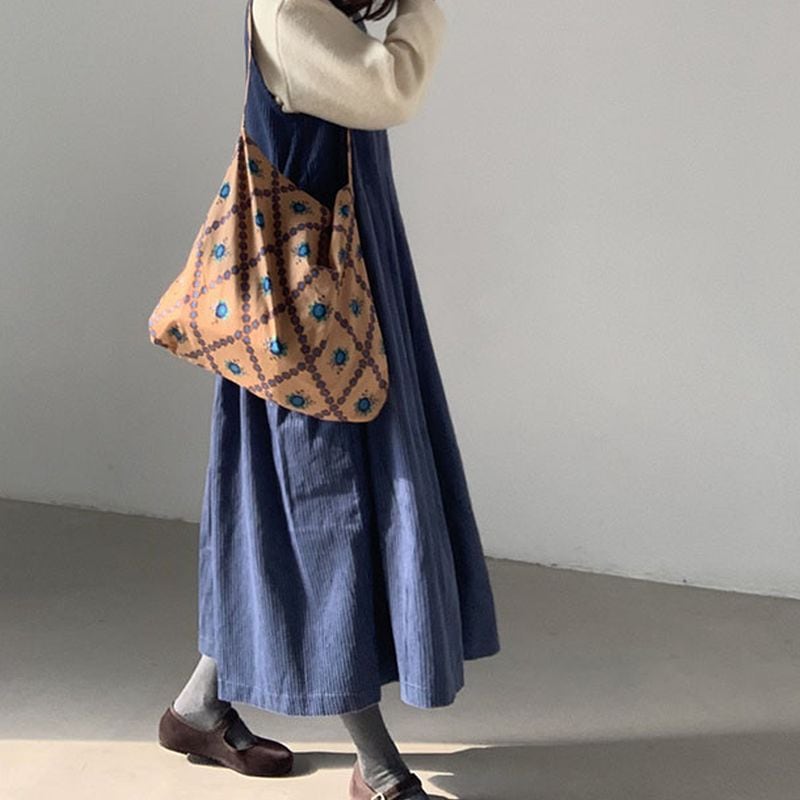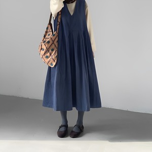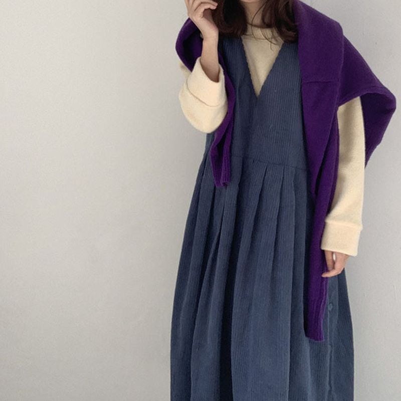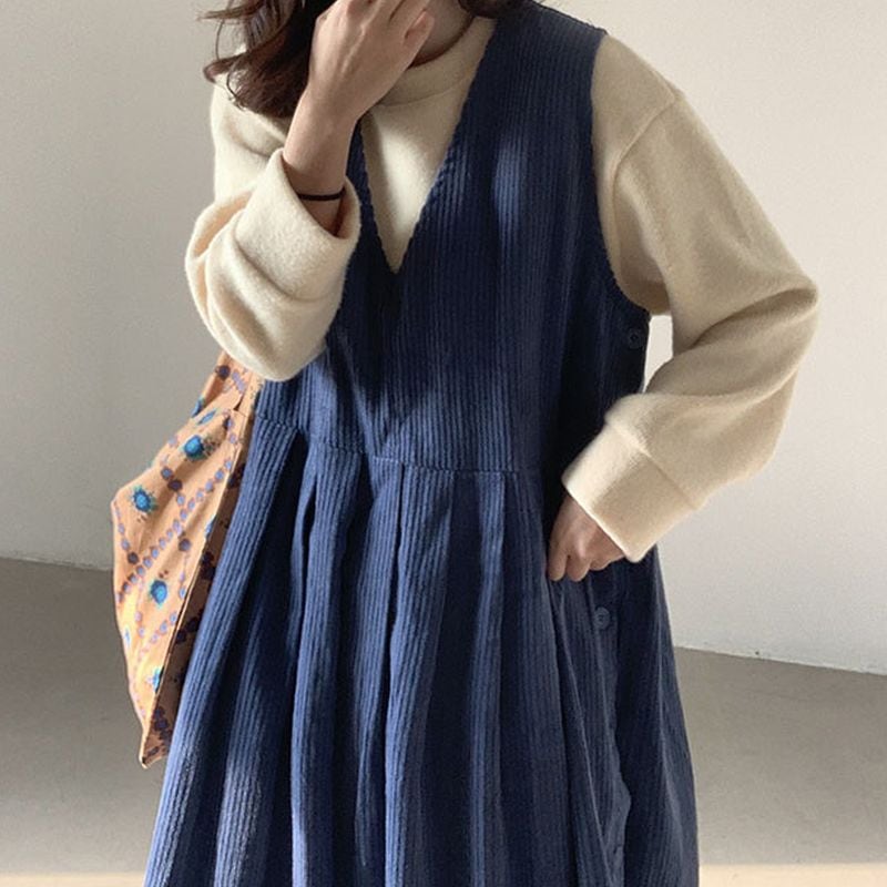 サイドにあしらわれたボタンデザインが目を引くコーデュロイワンピース。
