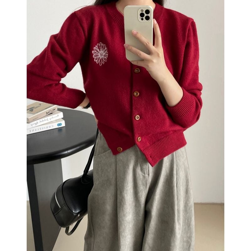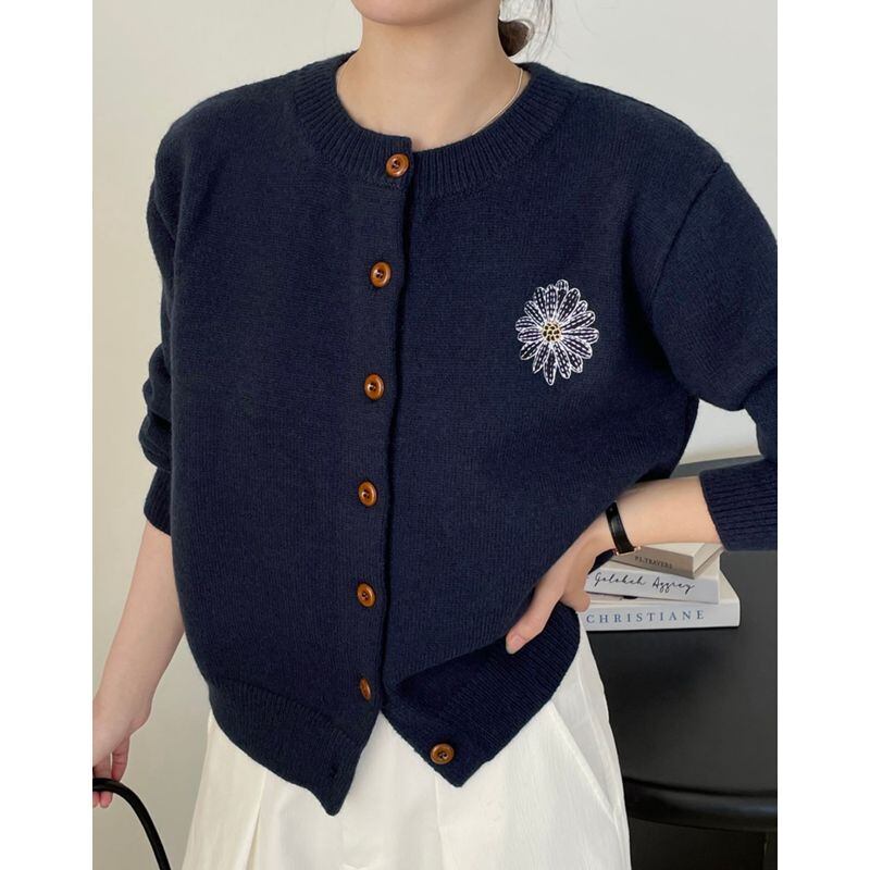 フラワー刺繍ニットカーディガン 201688