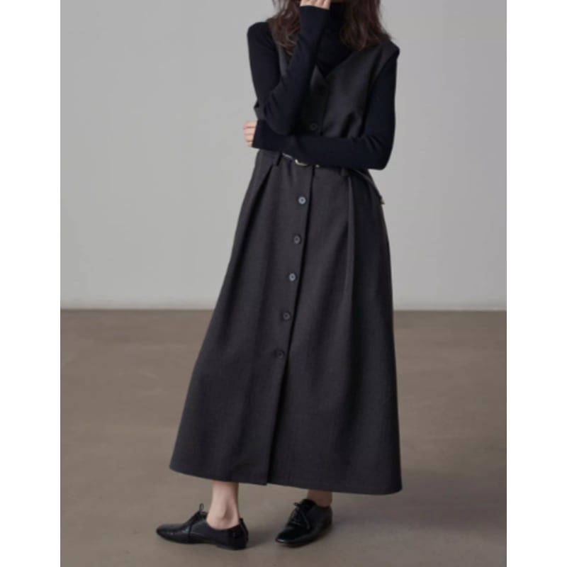 女性らしいシルエットが魅力のVネックジャンパースカート。
