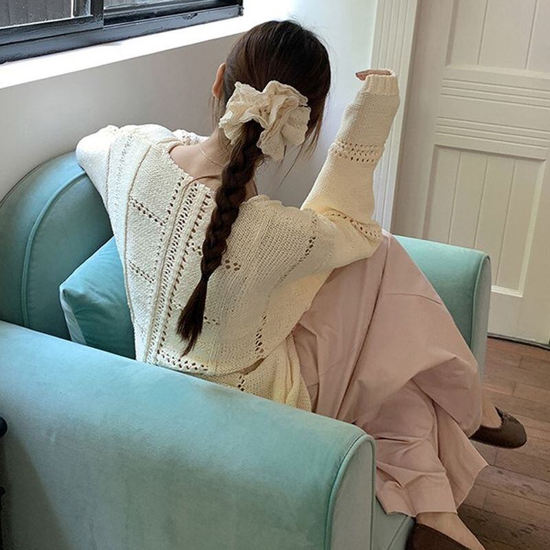 軽やかな透け感が女性らしさを引き立てる透かし編みニット。